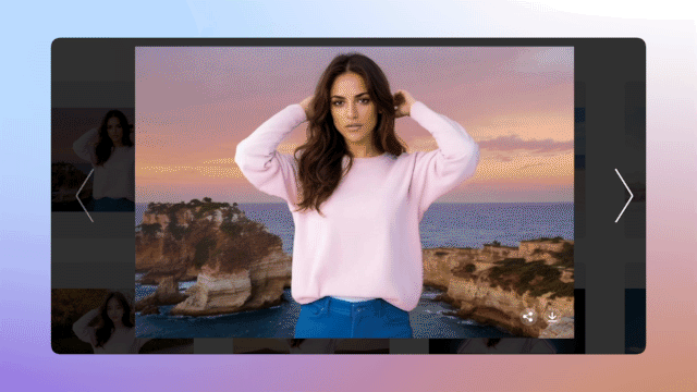 在传统的商业拍摄场景中,摄影师团队往往带着模特辗转多地拍摄几周,耗时耗力;但通过PhotoStudio® AI,用户只需几分钟就可以生成商品大图:输入衣服或其他商品的素材图,通过几步简单网页点击,就可以得到比肩一线模特拍摄的效果。