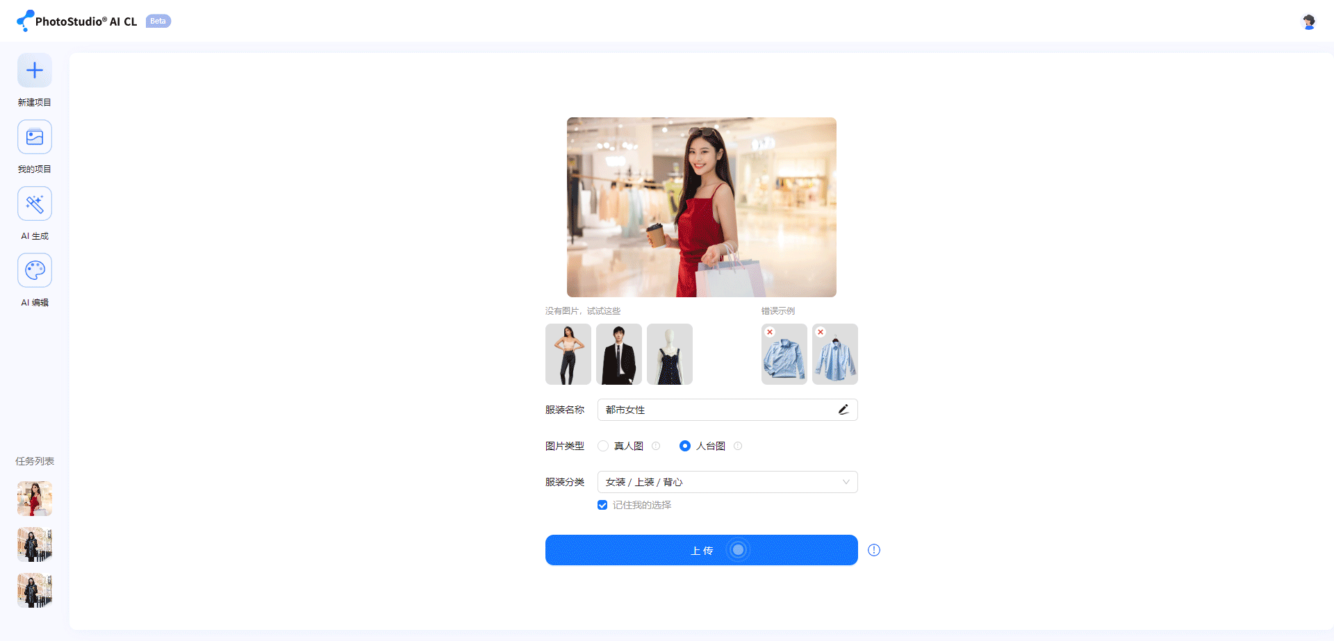 目前,PhotoStudio® AI主要上线了CL(服装版)与MC(商品版)图像生成两项服务,智东西第一时间对这两项功能进行了体验。