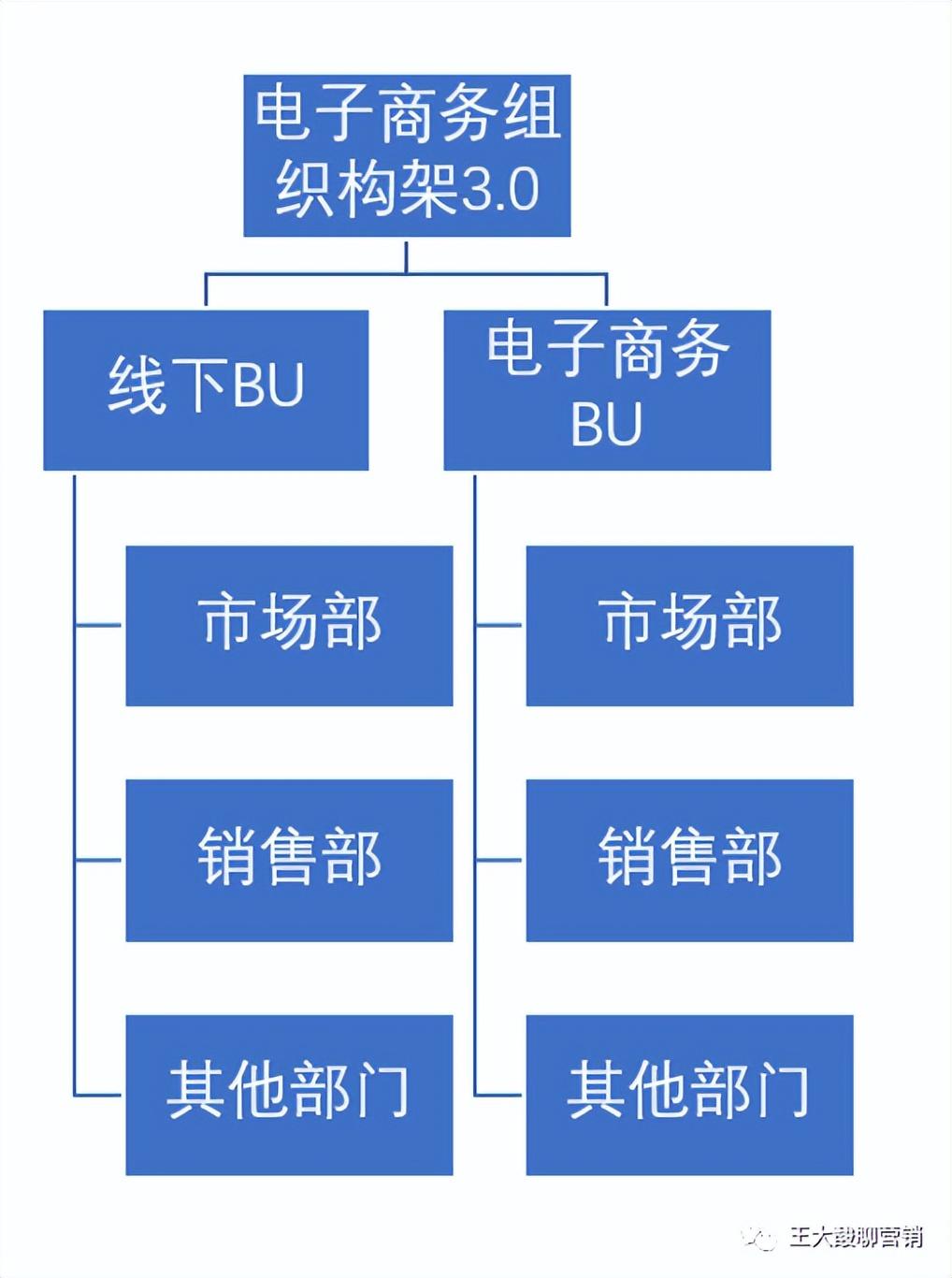 有一些非常有野心的企业,到了第三阶段,甚至为电子商务成立了专门的BU。 大家试想一下有了独立的法人主体,实际上已经脱离了原来的企业。这个时候的电子商务部就不仅仅可以卖自己的公司的产品了,可以打产品的组合拳。为了获得市场占有率,增加运能效率。