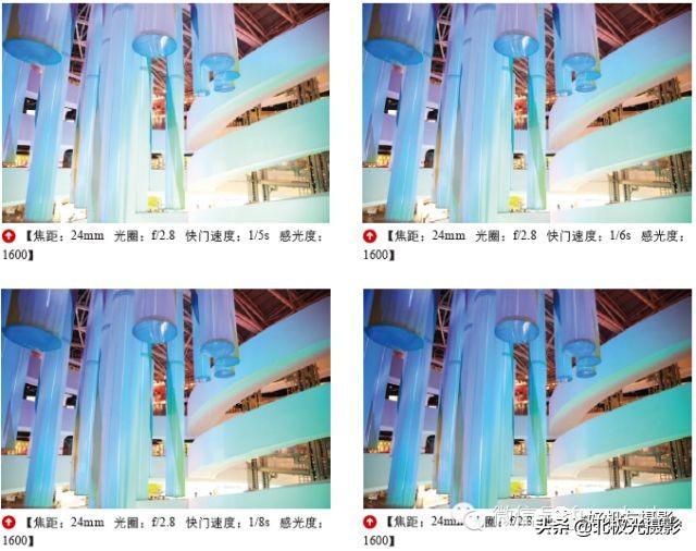 示例照片是在焦距、感光度都不变的情况下,分别将快门速度依次降低所拍摄的画面。