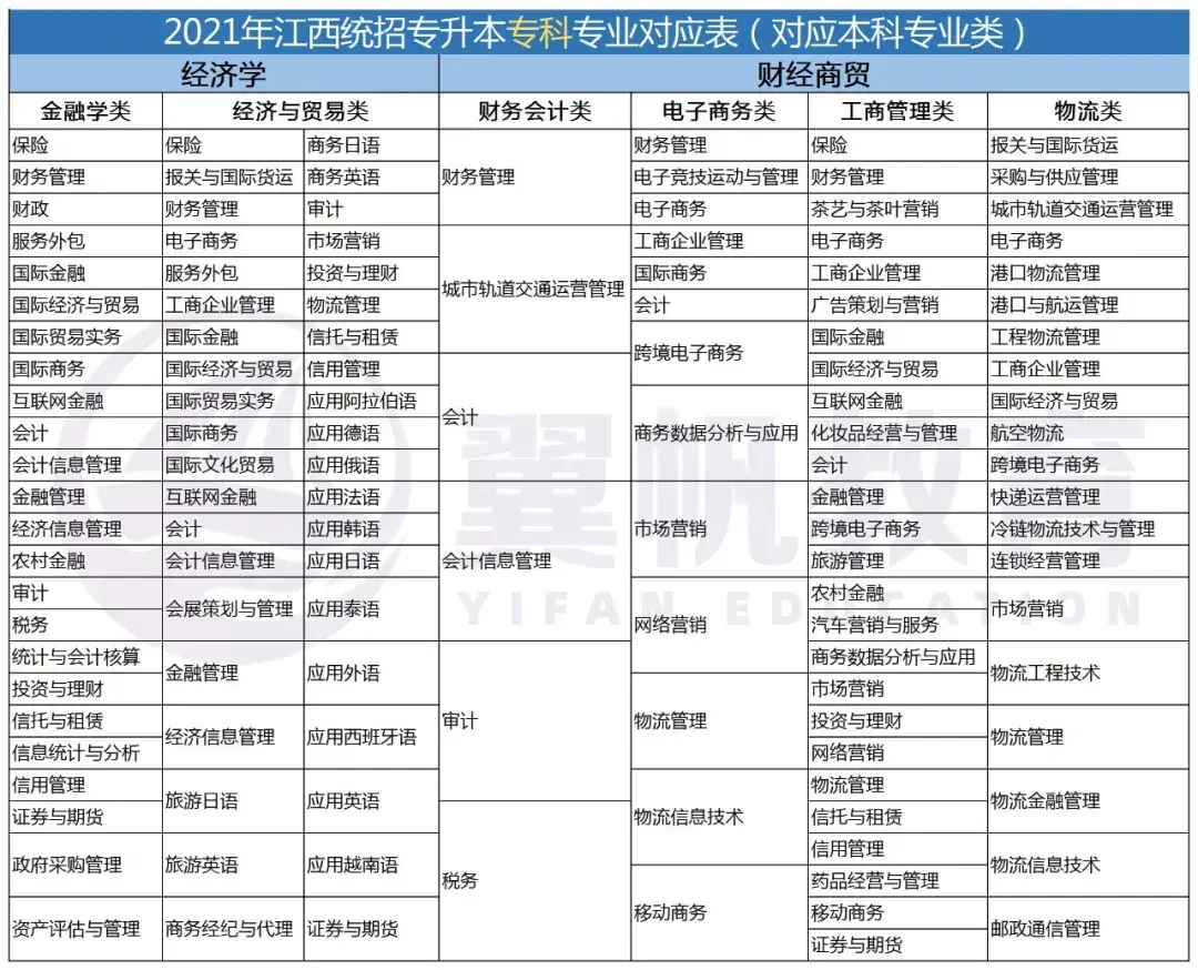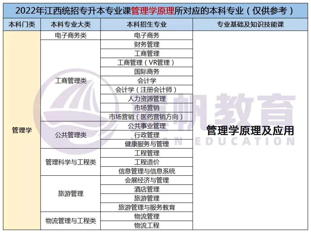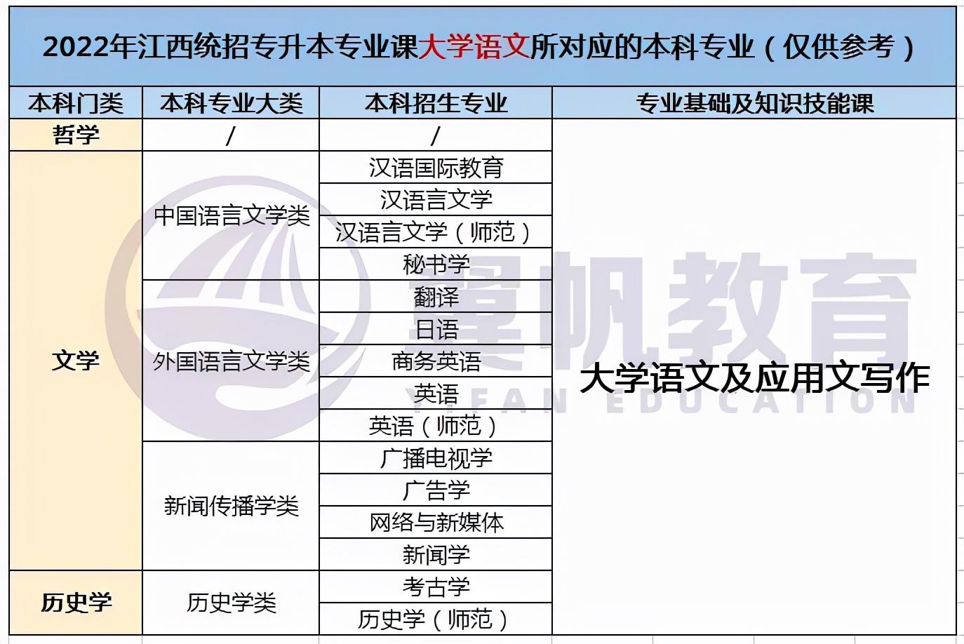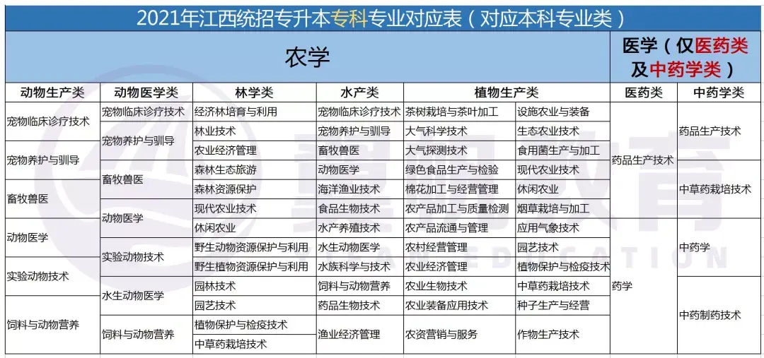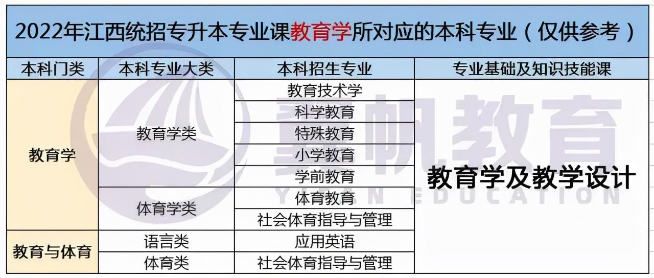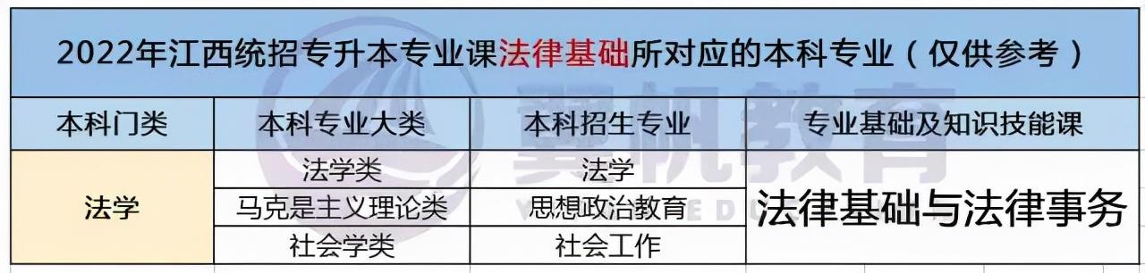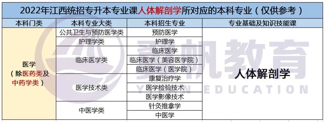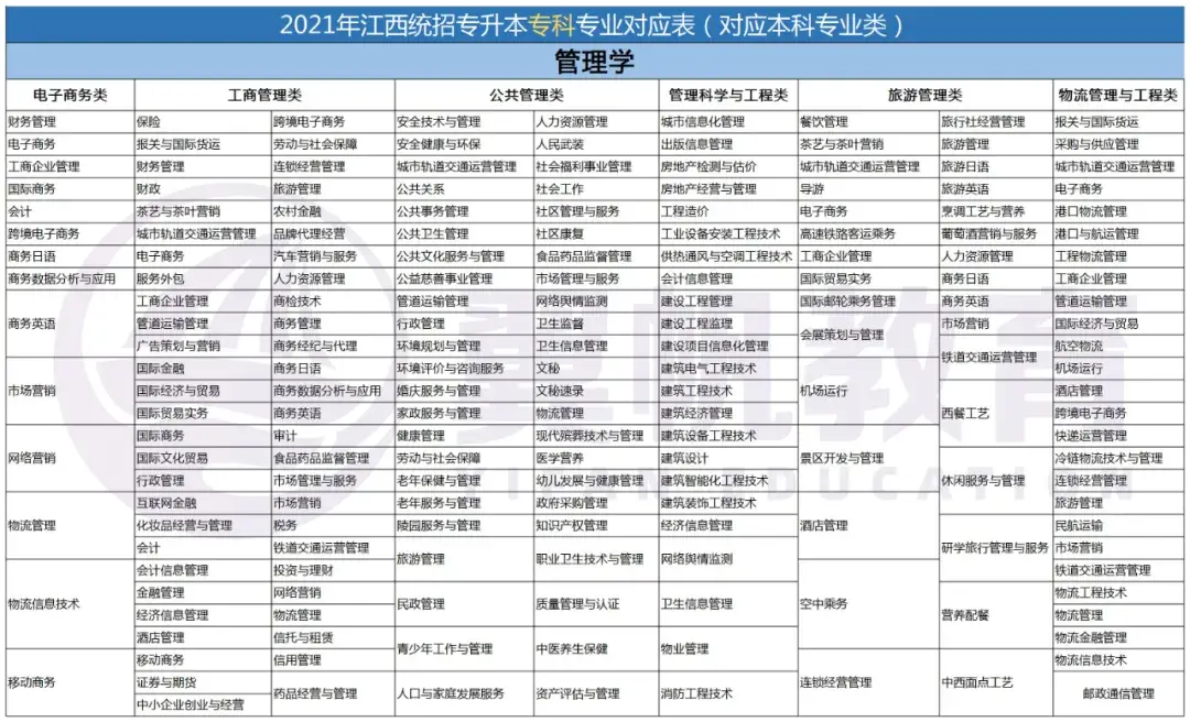 2022江西统招专升本9大专业考试科目对应本科专业表(仅供参考)