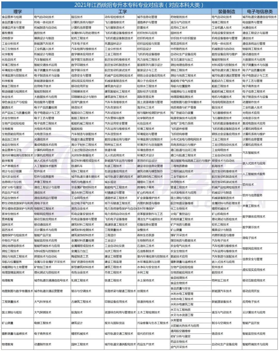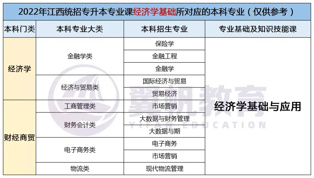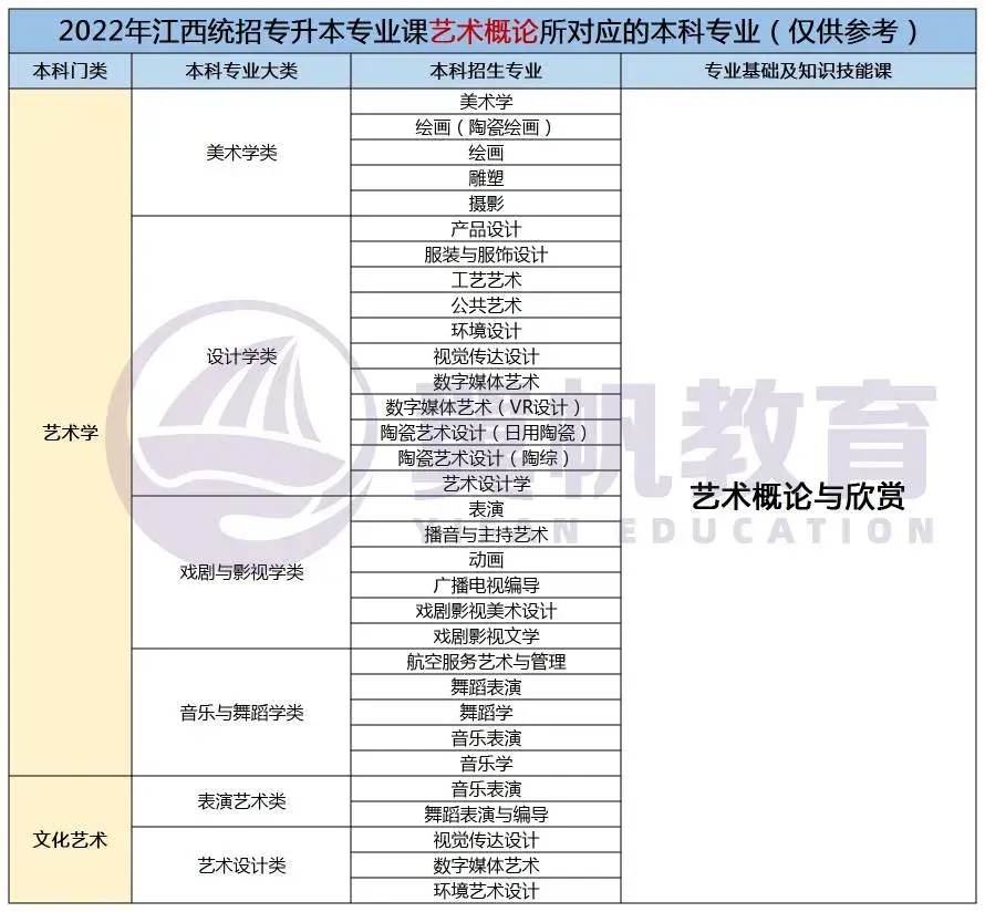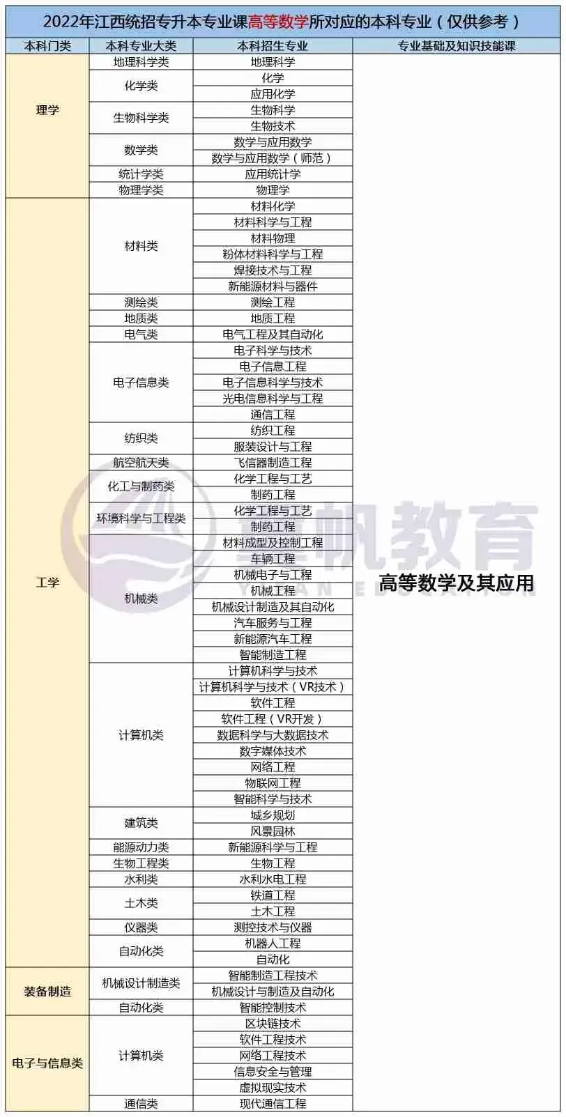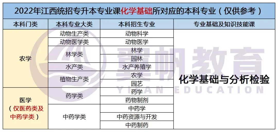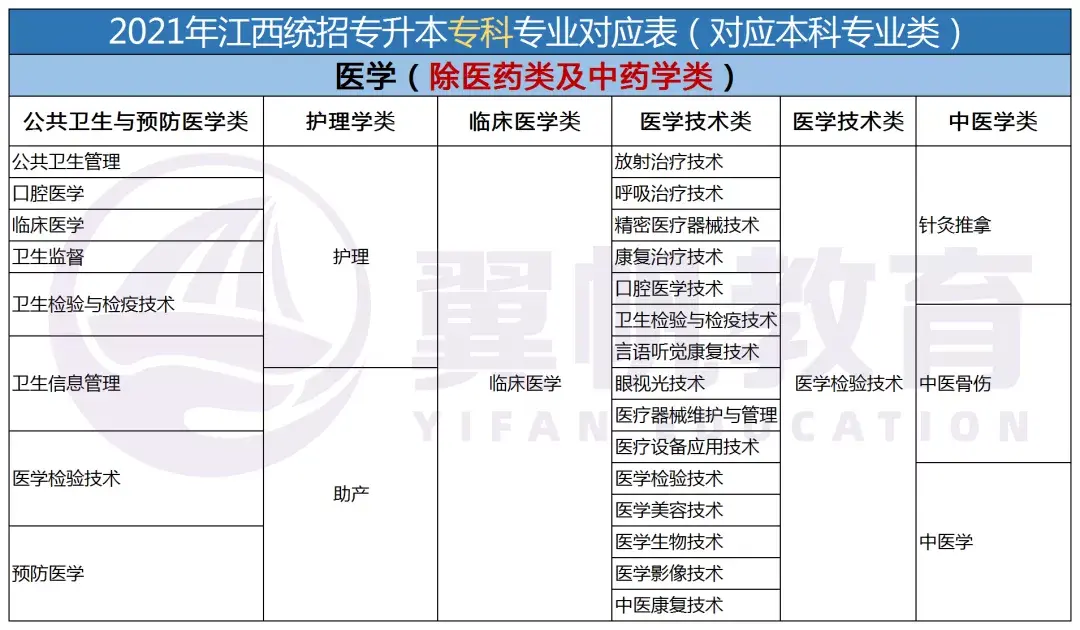 2022江西统招专升本9大专业考试科目对应本科专业表(仅供参考)