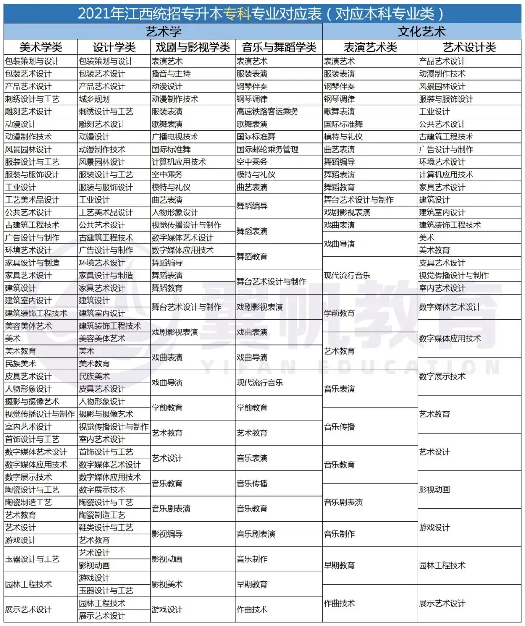以下是艺术学、文化艺术专业类所对应的专科专业。
