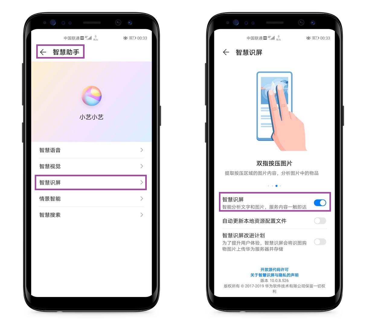 在华为手机上,有一个独特的智慧识屏功能,它能够智能分析图片和文字,我们要将这个功能给打开。
