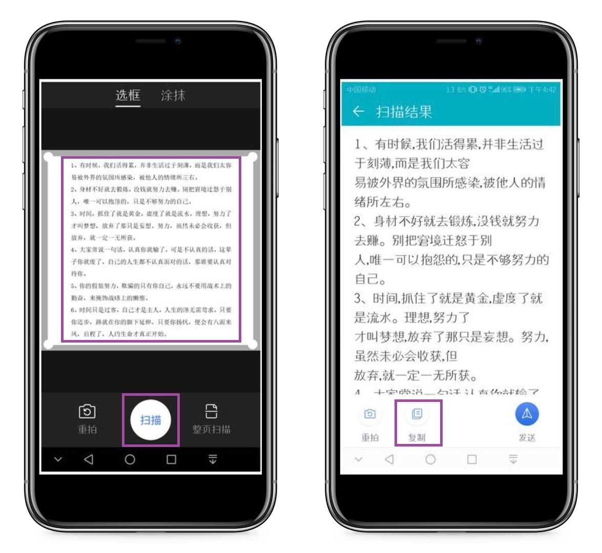 稍等几秒后,我们就可以看到扫描结果了,文本格式非常整齐,这份纸质文稿就变成电子档啦,选择【复制】即可提取。