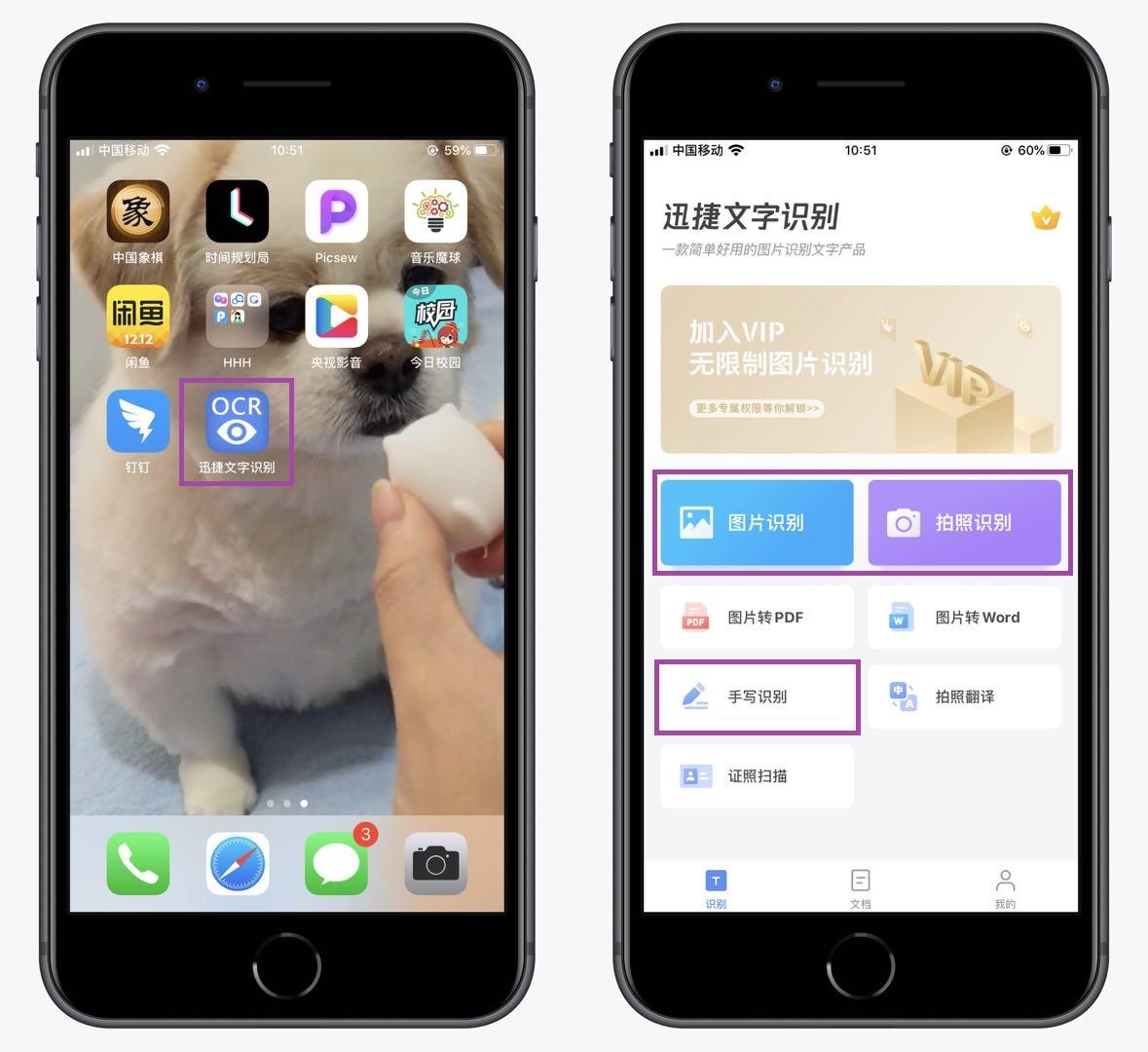 【拍照识别】:可以临时拍下纸质文稿,快速进入识别功能;