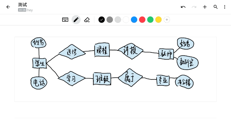 另外双击操作同样也适用于表格和流程图。小编尝试在华为MatePad Pro上绘制一个E-R图,然后双击两下,手画的图表就会变成线条平直、排列整齐的印刷体图表。