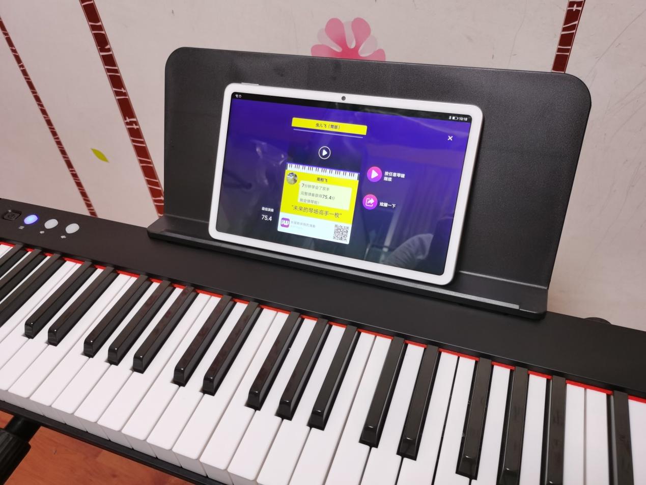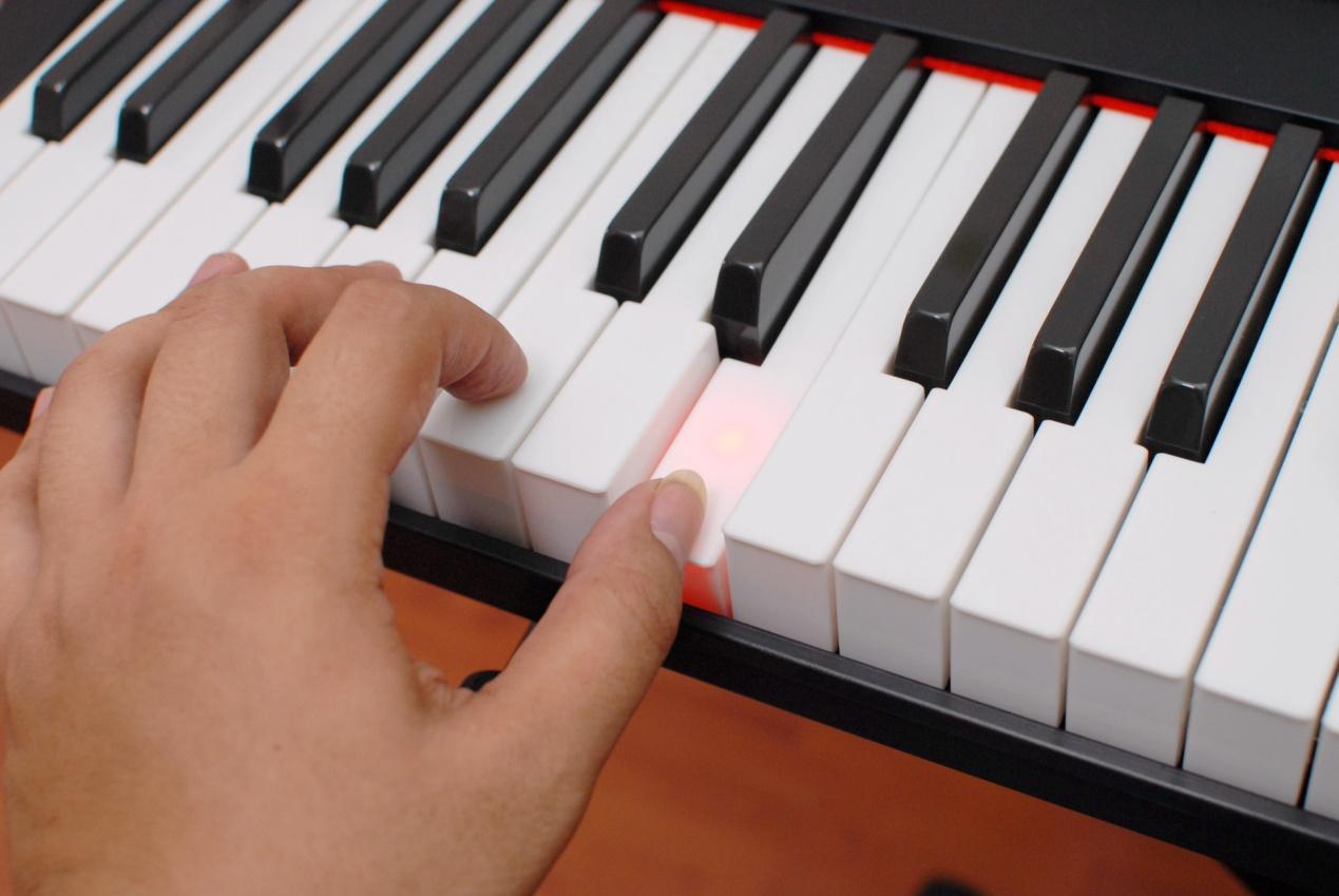 在这里我们不需要学习五线谱,也不用学习太多的乐理知识,只需要象玩"游戏"一样,通过APP的指引和电子琴的提示按下琴键即可,虽然一开始对于一双没有弹奏过钢琴的手而言协调方面有一定难度,但通过加以练习让手指形成肌肉记忆,就可以轻松的弹奏你喜欢的曲子了。
