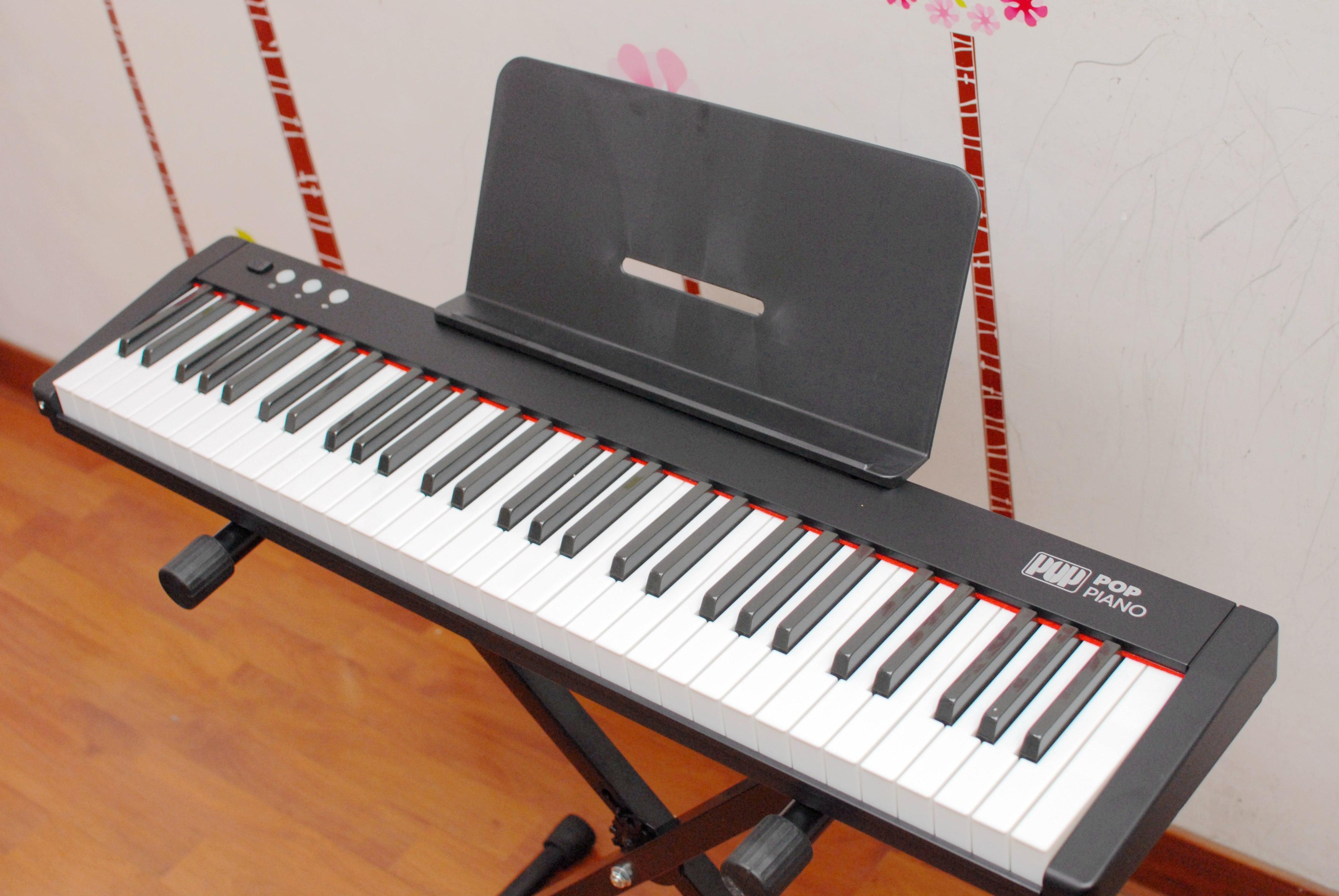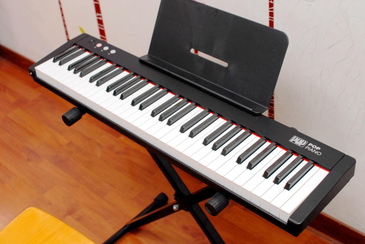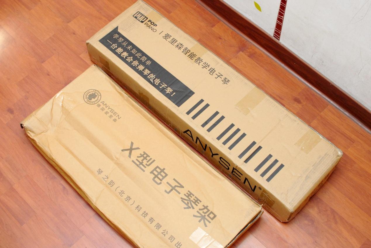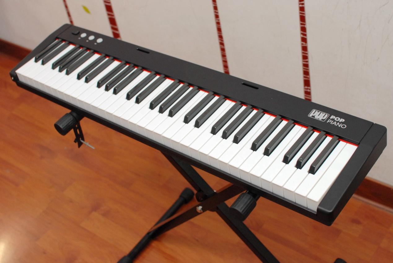 取出我们今天的主角爱里森智能教学电子琴摆放至琴架之上,这款产品的个头并不大,毕竟61键的设计相比88键的标准键盘还是有所简化,但这并不意味着减配喔~~只不过在音域上没有那么广而已,用来入门学习的话61键盘就足够了。