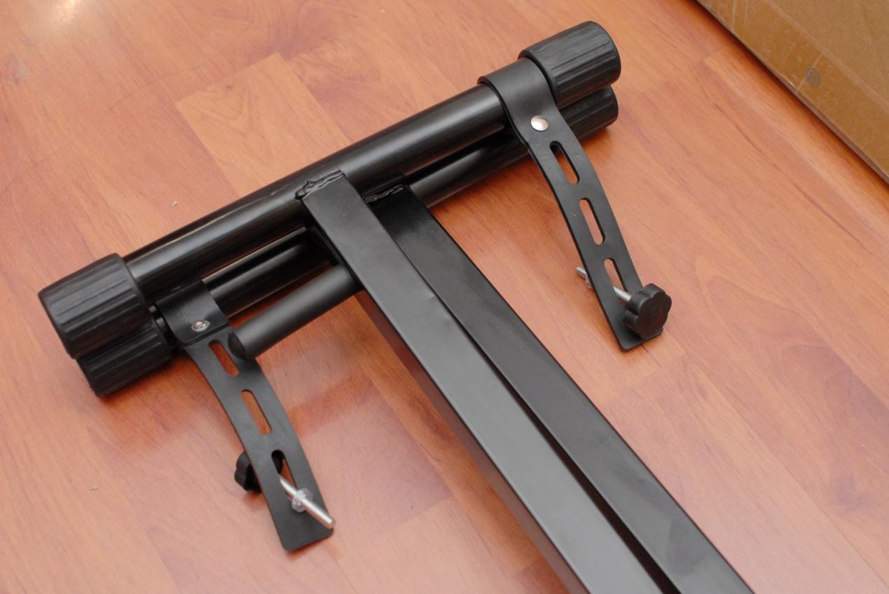 除此之外,在琴架上端左右两侧还配备了固定电子琴的皮带,把上面配备的螺丝拧进电子琴下即可。