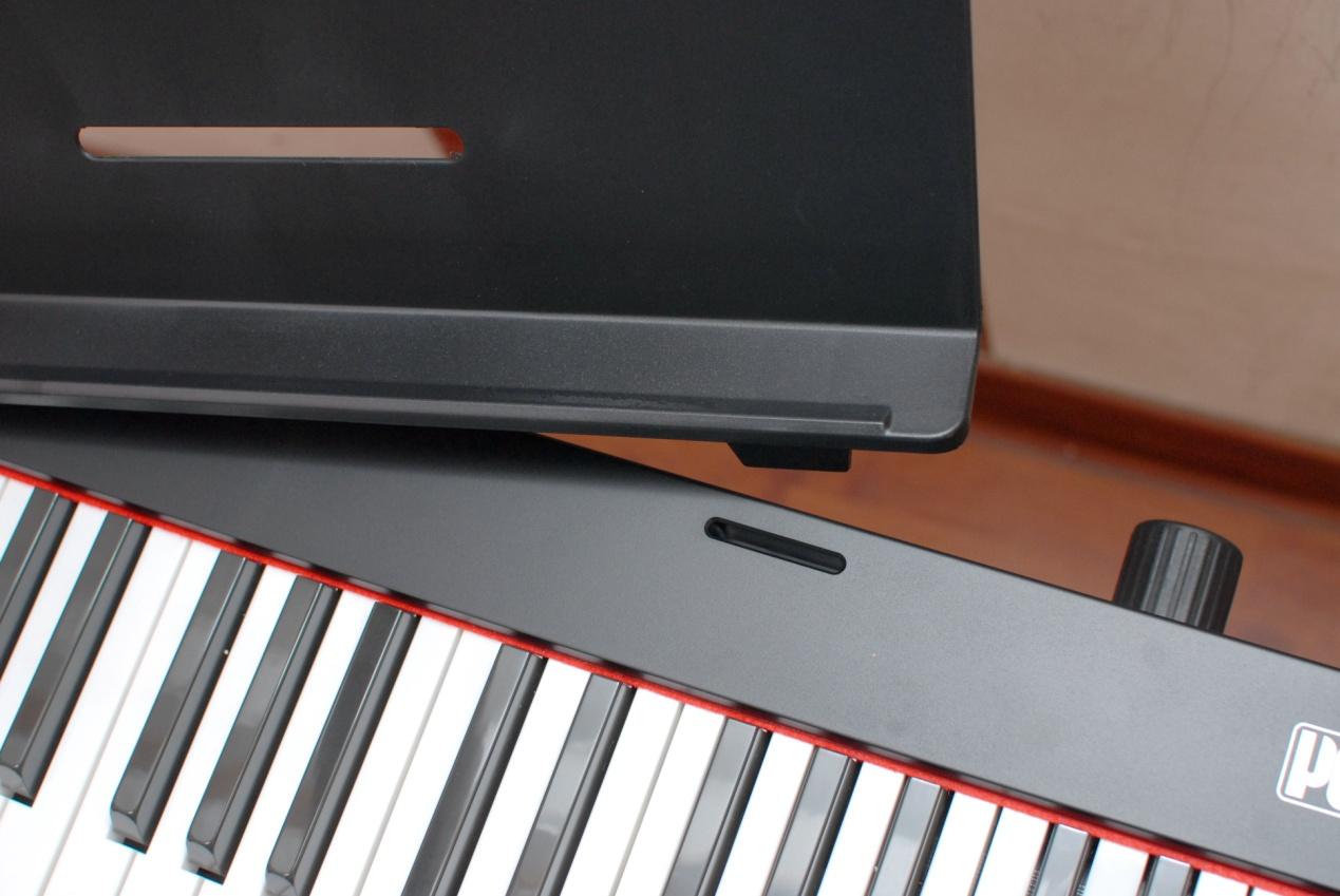 这里也要小小吐槽一下,曲谱架用来放置琴谱没有任何问题,但如果用来放平板电脑,进行跟弹学习会有点不稳,所建议厂家在曲谱架上预留卡槽,方便用户可以更稳固的放置平板电脑。