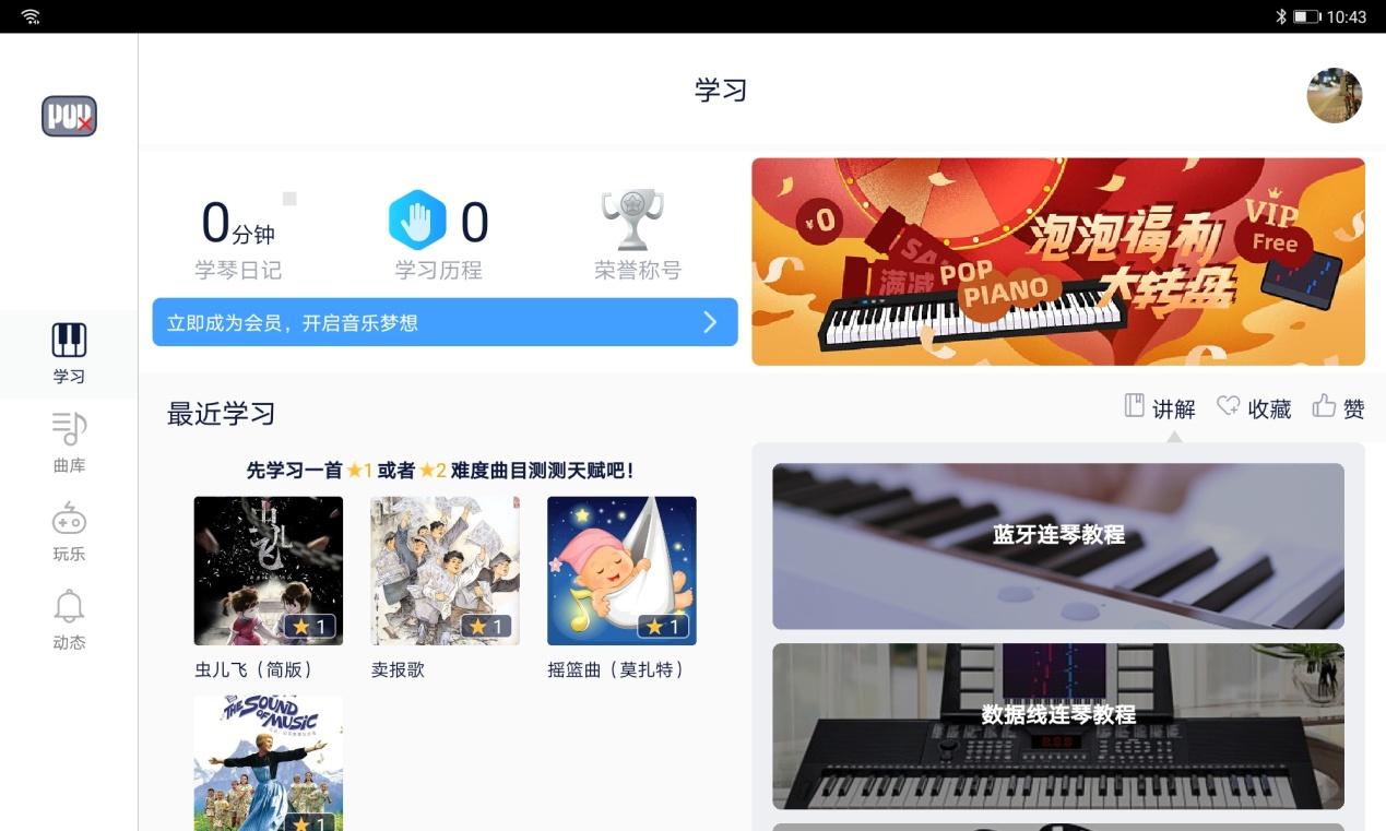 和其他智能电子琴一样,爱里森智能教学电子琴也提供了一个专属APP应用,通过蓝牙让平板或者手机跟电子琴进行连接,然后通过电子琴播放声音、亮起提示灯,配合平板或者手机的画面、琴谱进行学习,所以下面我们来说说APP端的体验。