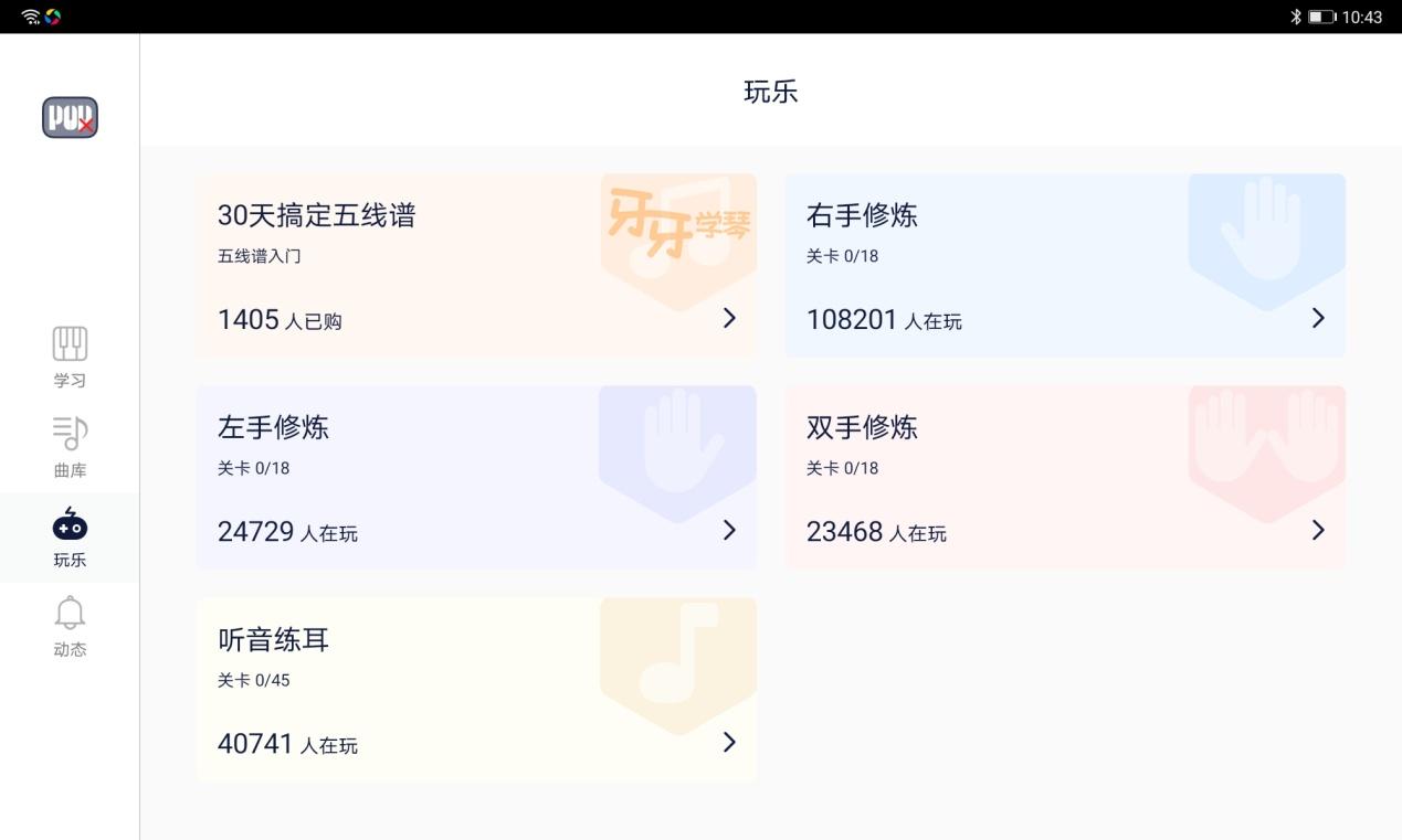 另外,在APP曲库页面,我们可以看到提供了内容部分不仅有入门的练习曲目,各种主流的音乐以及抖音神曲一应俱全,丰富的音乐资源满足多种需求。