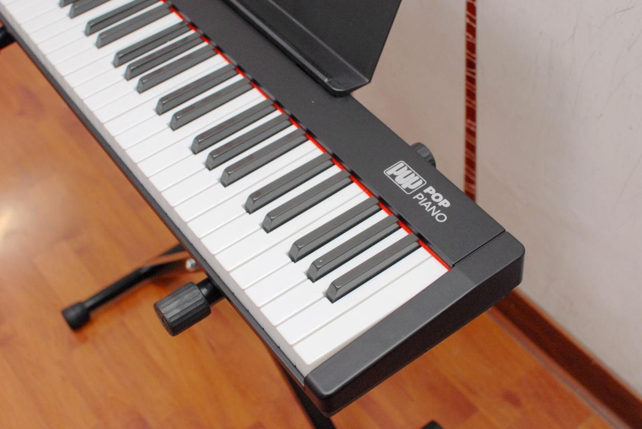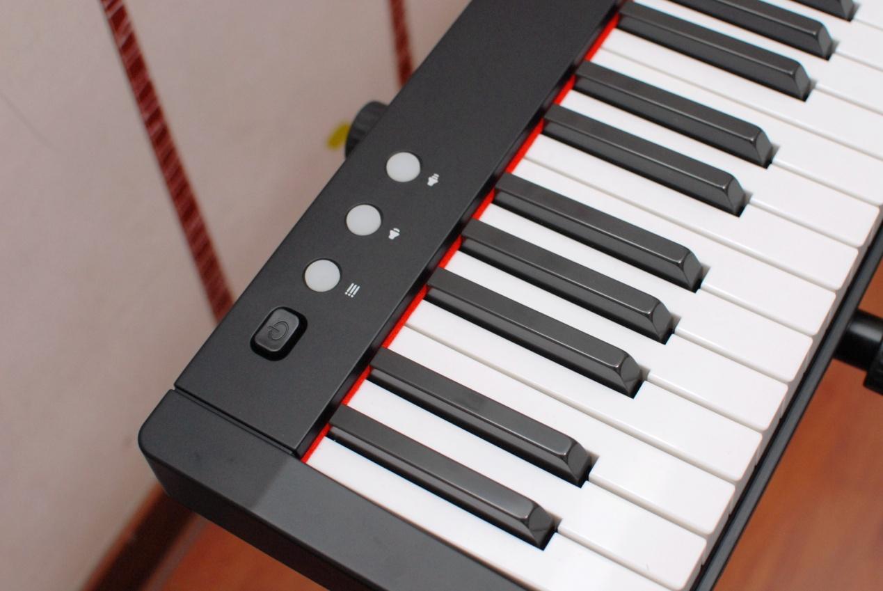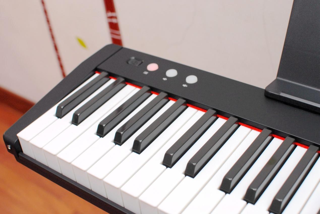 爱里森智能教学电子琴和传统钢琴一样,白色按键为全音,黑色按键为半音, 61键共5个八度,一个八度共12个按键。另外,大家也可以看到在按键区域,还设计了红边作为配色,小小的细节可以说为产品提升了不少颜值。