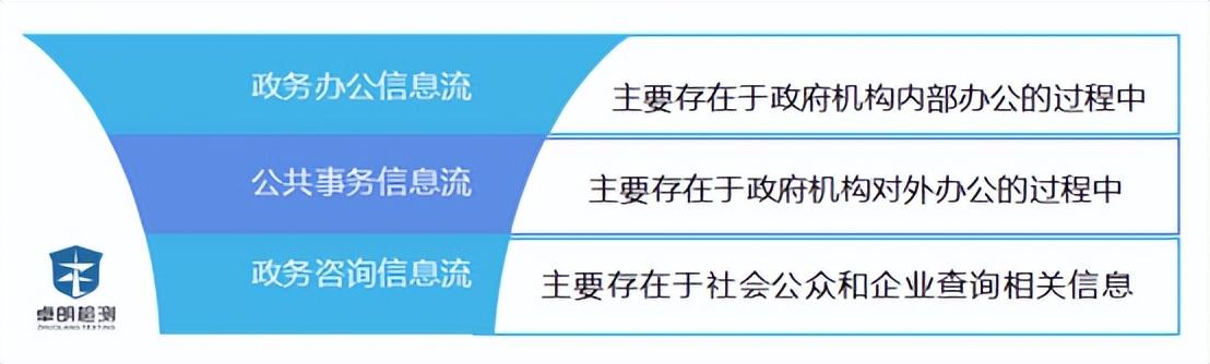 根据国家政府所规划的项目来看,电子政务主要包括:政府间的电子政务、政府对企业的电子政务、政府对公民的电子政务。从中国发展历程来看,社会公众和企业主要通过政务信息查询以及公共政务办公与电子政务平台建立沟通,相关事务处理请求通过办公自动化系统中转给政府工作人员,政府工作人员可以通过办公自动化系统进行政务处理及对政务信息查询系统的更新。电子政务系统中主要存在三种信息流: