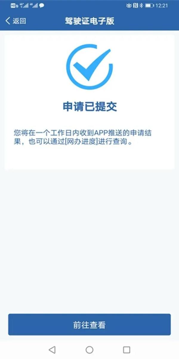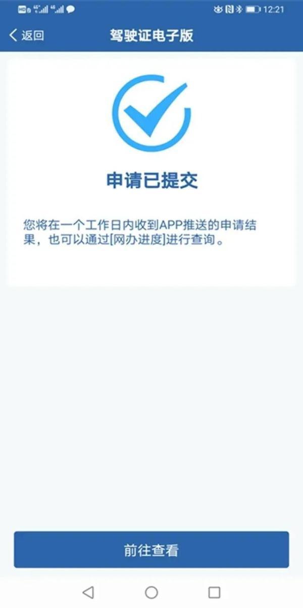 对信息系统无符合要求留存照片的,除拍照方式提交电子照片外,还可以在手机相册中选择证件照片,用于申领电子驾驶证。提交证件照片后,公安机关交通管理部门将在1个工作日内进行审核,对符合要求的,“交管12123”APP将生成电子驾驶证,并推送申请成功信息。