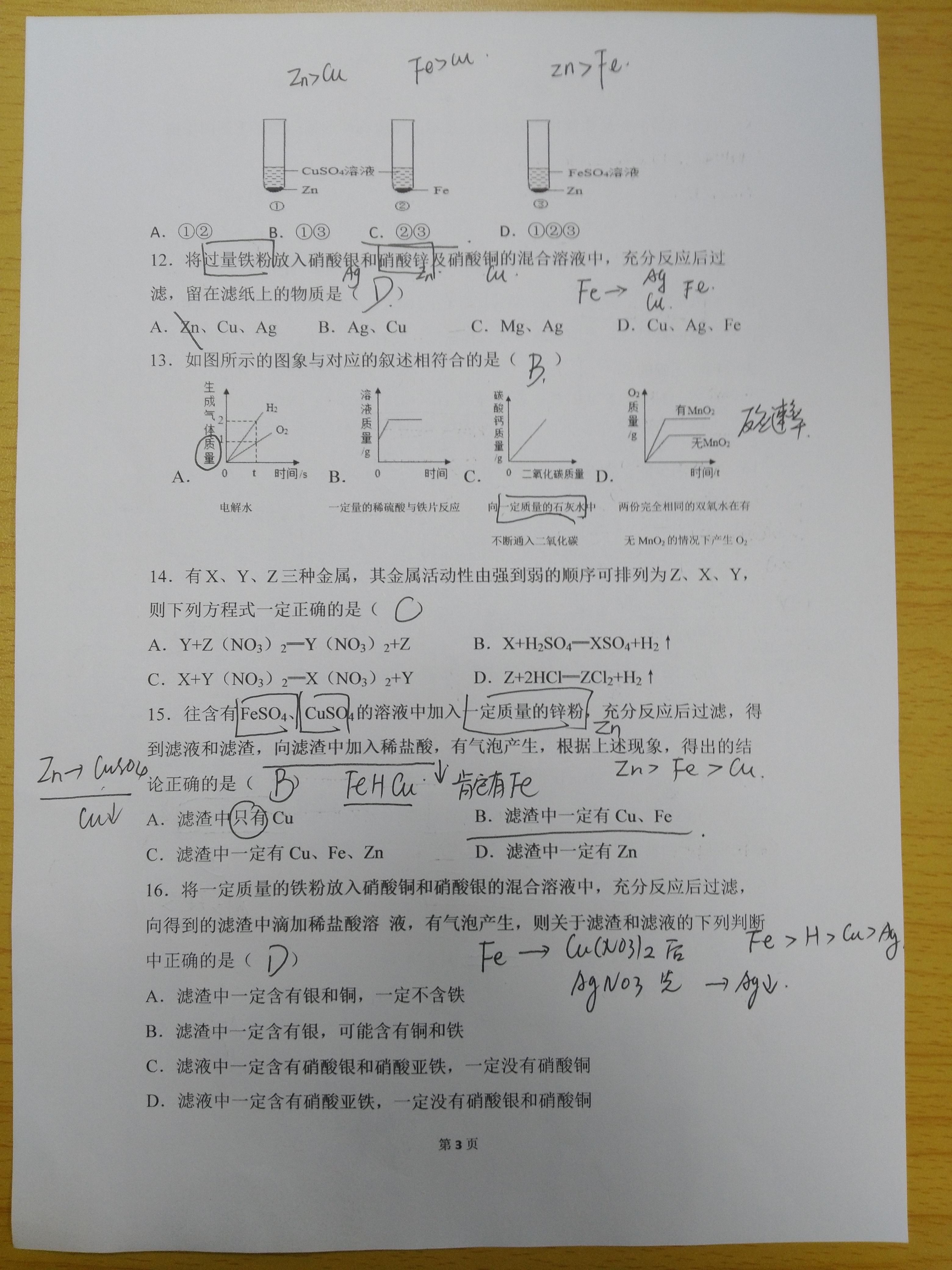 九年级化学第八章金属和金属材料(金属活动性顺序的应用)