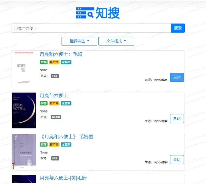 这是一个免费且强大的书籍收索引擎,网站的风格也很简洁,没有啥花里胡哨的东西,里面各个类型的书籍都有,操作也很简单,只要在搜索框里输入想要电子书名字,就能获取下载链接
