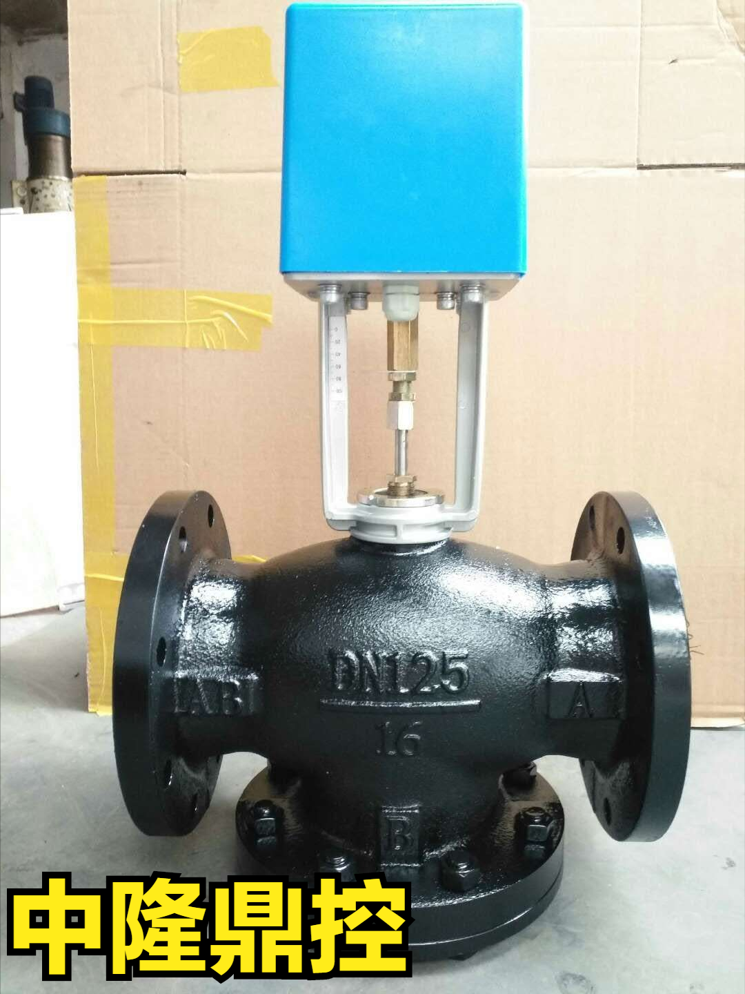 电动三通调节阀类 包括调节阀、节流阀和减压阀,其作用是调节介质的压力、流量等参数。电动三通调节阀,是由直行程电子式电动执行机构和采用圆筒型薄壁窗口形阀芯的三通合流(分流)阀组成。具有结构紧凑、重量轻、动作灵敏、流量特性精确,直接接受调节仪表输入的(4-20mA DC 0-10mA DC或1-5V DC)等控制信号及单相电源即可控制运转,实现对工艺管路流体介质的自动调节控制,广泛应用于精确控气体、液体、蒸汽等介质的工艺参数如压力、流量、温度、液位等参数保持在给定值。适合于把一种流体通过三通阀分成二路流出或把两种流体经三通阀合并成一种流体的工况。