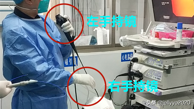 左手:一般为左手握镜;拇指放在上下摇杆处;食指放在吸引按钮处。
