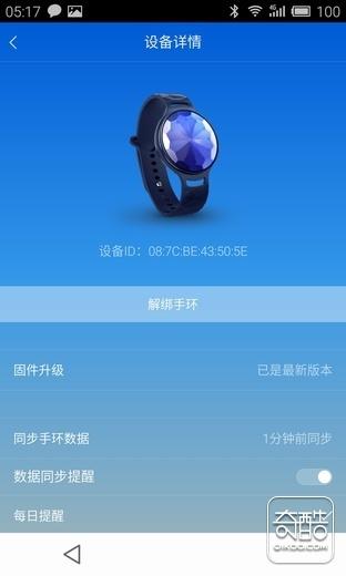 绑定好后就会在手机上看到手环的信息,如下图所示: