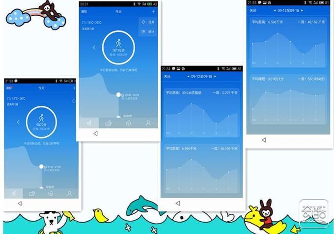 平均燃烧脂肪的克数以及一周的总量;记录了平均距离以及一周的总距离还有睡眠质量平均每天的睡眠时间,以及一周的总睡眠时间,从整体来看手环的记录情况还比较准确,比一些手机软件的记录准确,但是睡眠的时间记录有一定的误差,没有达到商家所说的精确度。希望以后能够在精度上有所提高,更加精确的记录每天的运动、睡眠等,为个人量身定做健康方案。