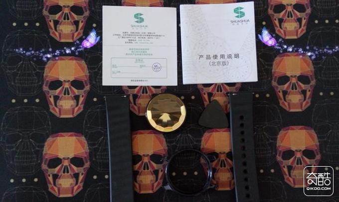 收到刷刷手环的快递后,兴奋的打开了外包装,看到了刷刷手环的外包装,第一印象是包装体现了地域特色,上面有北京鸟巢、天坛、中央电视台大厦等标志性建筑物的简笔画,左上角是刷刷手环的商标是一个由8个等腰三角形组合成的S型图案,很有科技感同时也是刷刷手环读音的第一个字母,右上角写着刷刷手环炫酷版展现了手环的版本信息,而手环的表盘就在盒子的中央,像一颗宝石一样,很是漂亮。如下图: