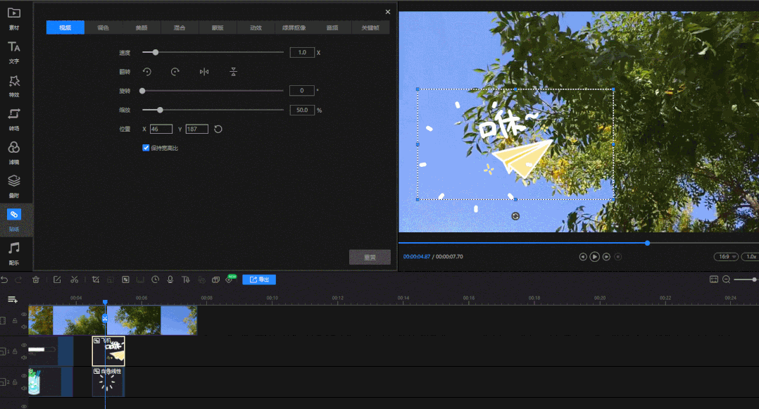 这样视频贴纸添加就完成了,这个软件的剪辑功能、视频压缩等功能也非常实用哦,感兴趣的小伙伴快去试试吧!