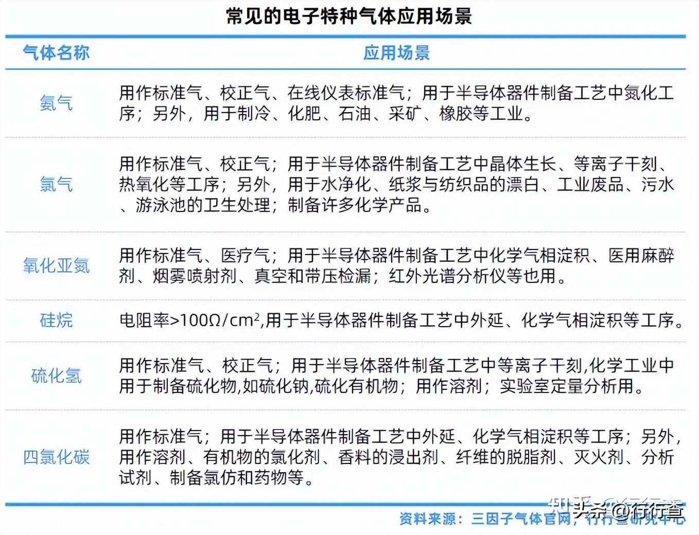 大宗气体与特气应用场景丰富