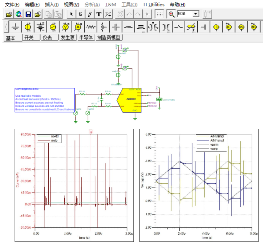 2、模型广泛:各个IC厂家提供大量仿真模型,自带数学函数和模拟元器件行为建模技术允许用户进行各种高度自定义仿真。