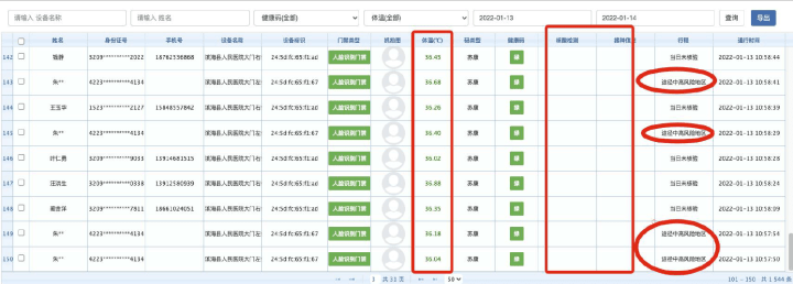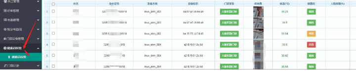进入人员的核酸记录,行程记录,体温数据,进出抓拍等完整数据实时上传