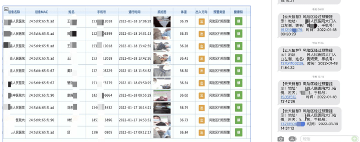 当检测到有途径中高风险区的人员在进行健康码或刷身份证时,系统会推送预警信息