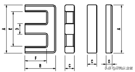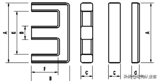 两边的阴影部分与中柱的形状完全不一样,但是他们的面积也是想等的。只有这样磁芯的磁材在做到最大的利用,如果不想等,那么Ae值就只能取最小的。但实际的厂商在制作的过程中一般都会去最到尽量一样。