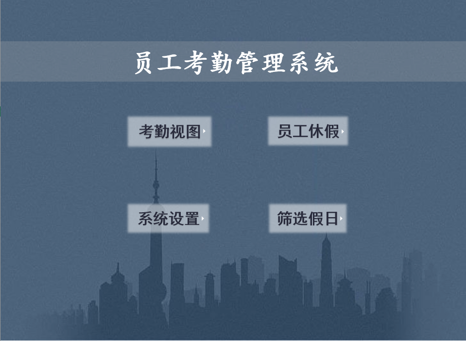 大家请看范例图片,这是员工考勤系统,分为四个模块。