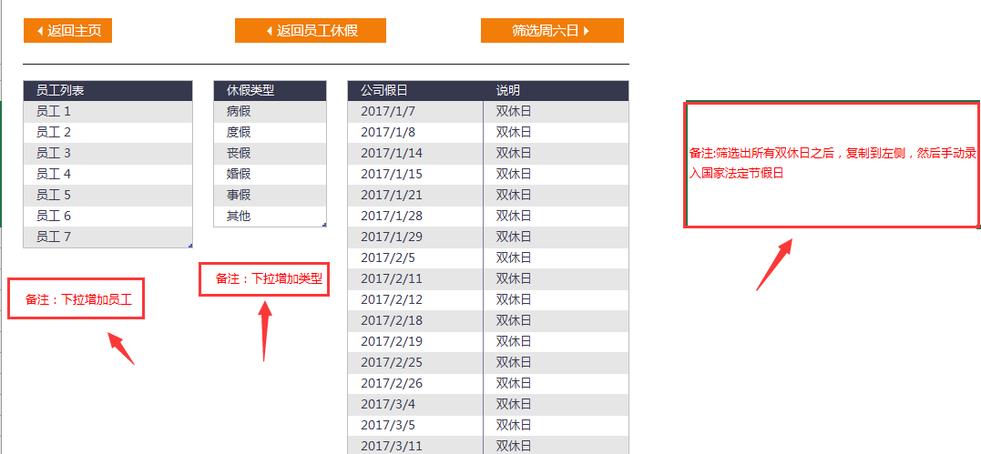 关于节假日的设置,单休双休的设计,大家按照默认的格式来。