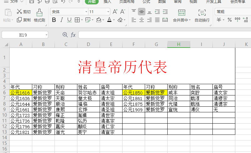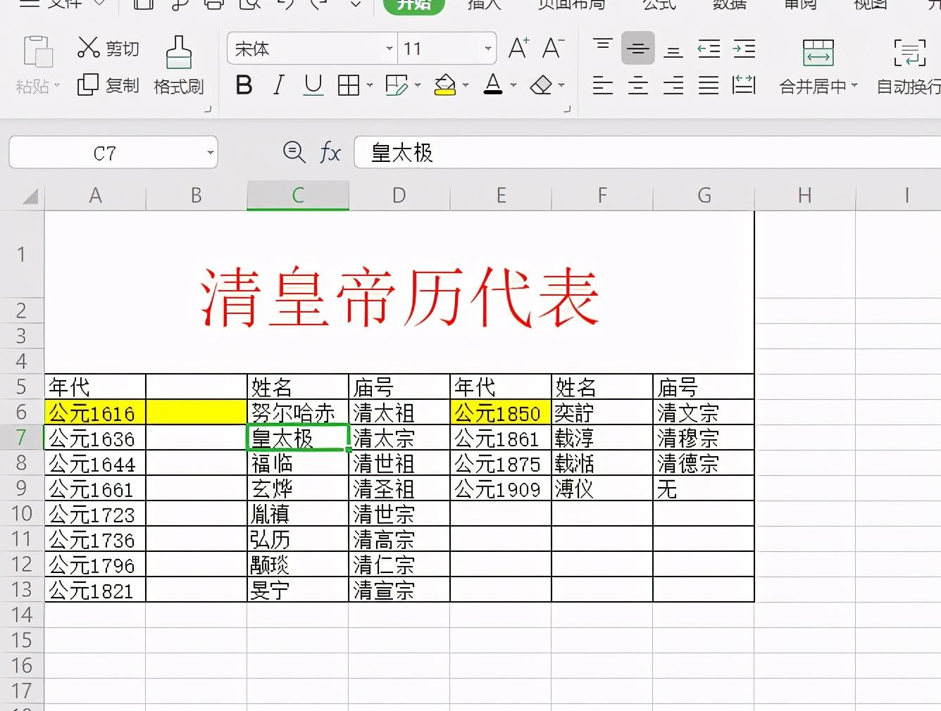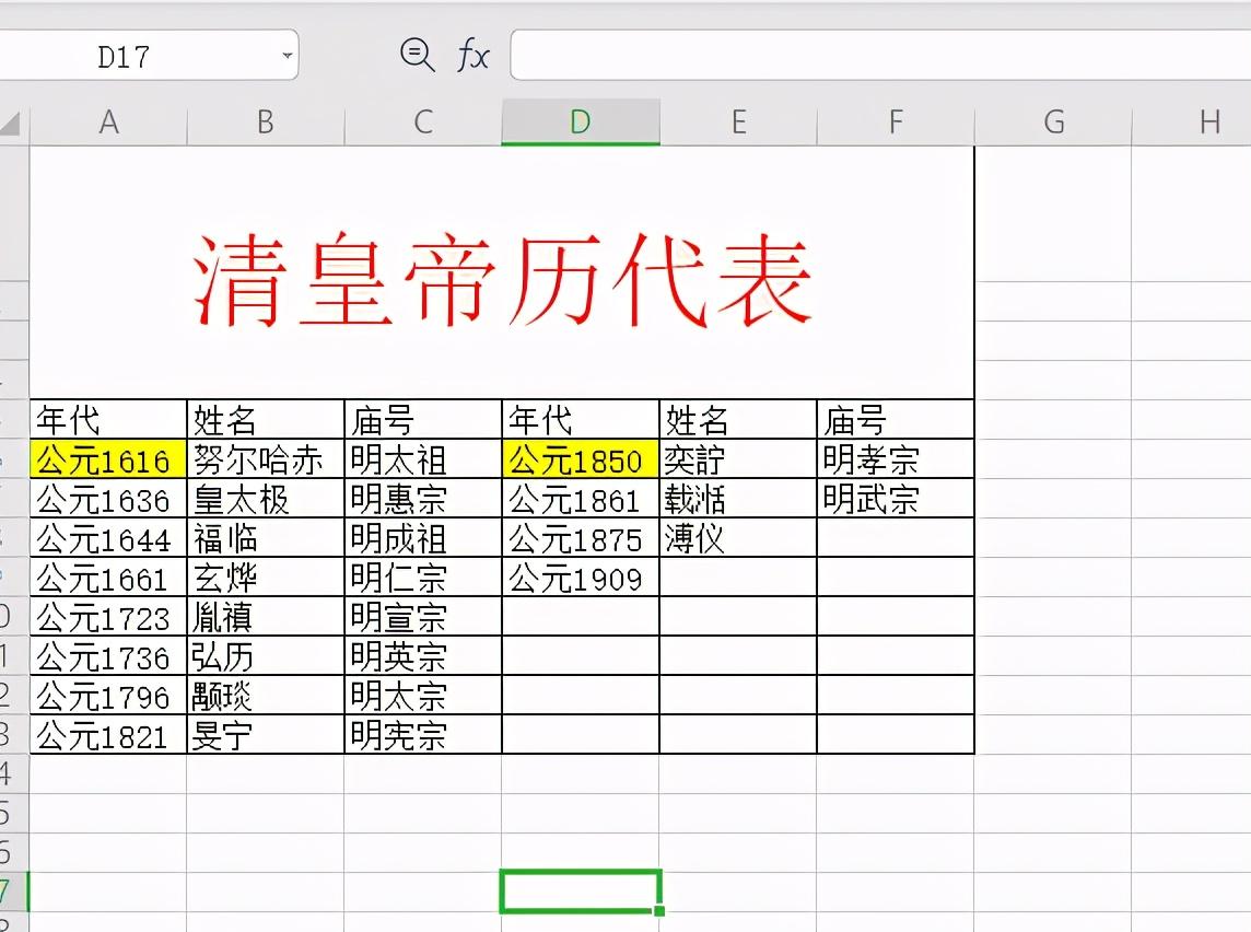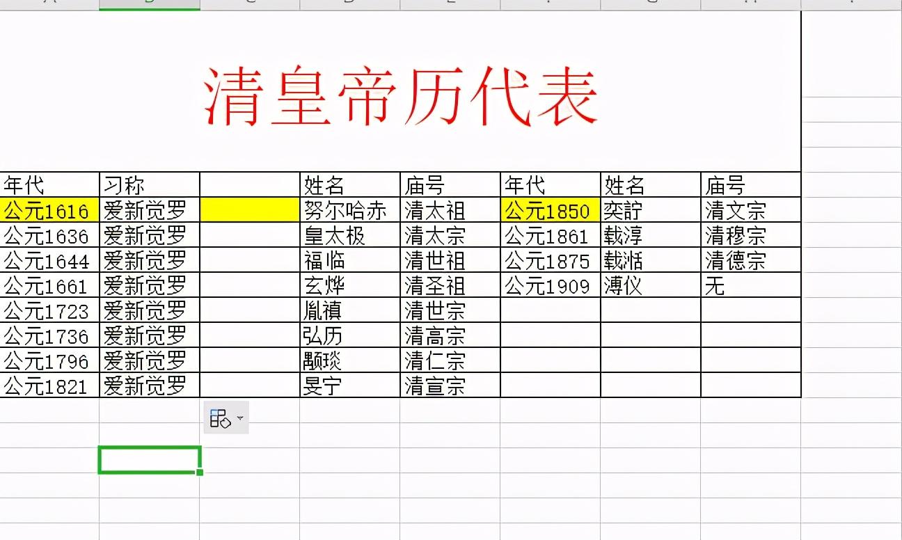 我们把基本表格修改之后,当然还需要一些修改,因为明朝和清朝一些皇帝名称有些出入,因此我们需要修改一些数据。