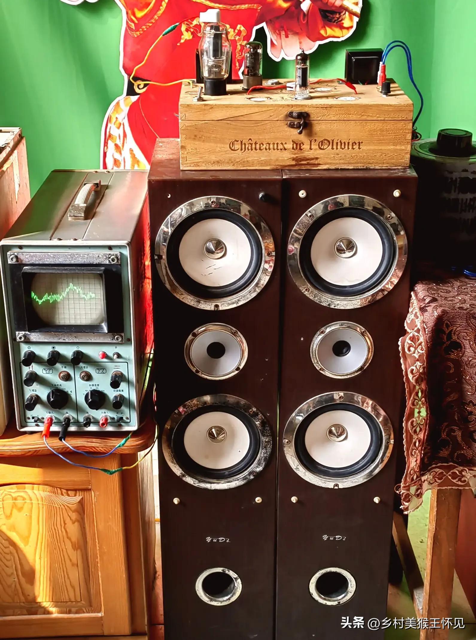 自己做的多功能胆机,也是做实验用的。电子管示波器在这里充当了功放输出显示,波形随着音乐的节奏而跳动,真的好有感觉!
