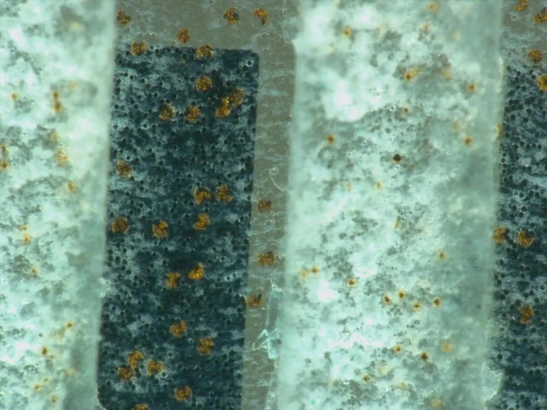 07.液晶屏喷漆 以往光学层面上难以分辨出的液晶屏上的喷漆,只需使用Leica DVM6的“同轴光”以及“斜照明功能”,可分辨出玻璃屏幕上粒径几十微米的漆体颗粒。