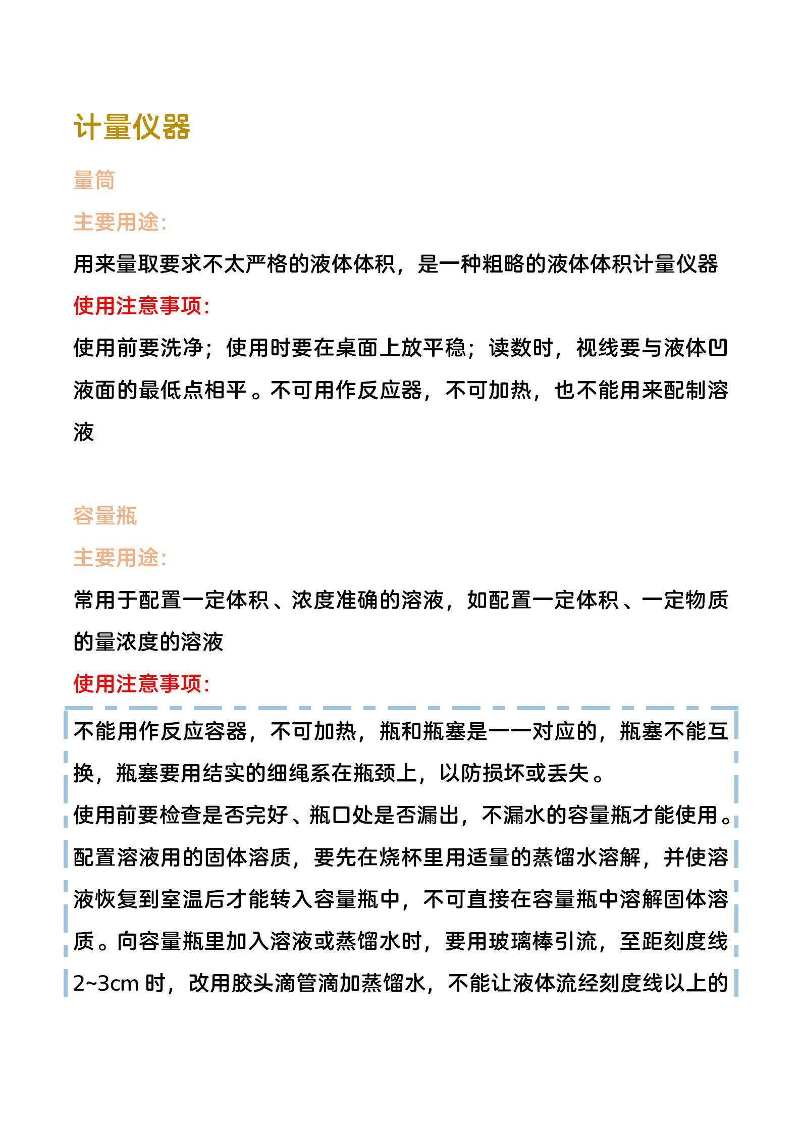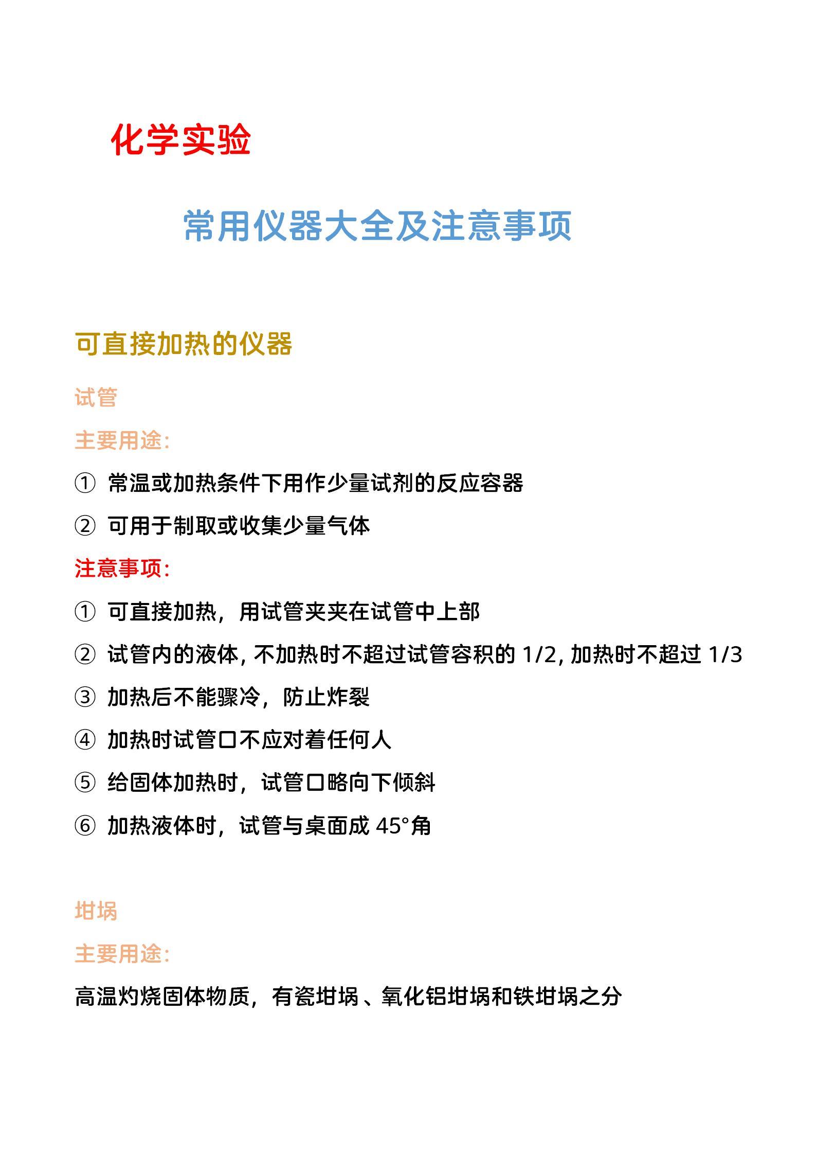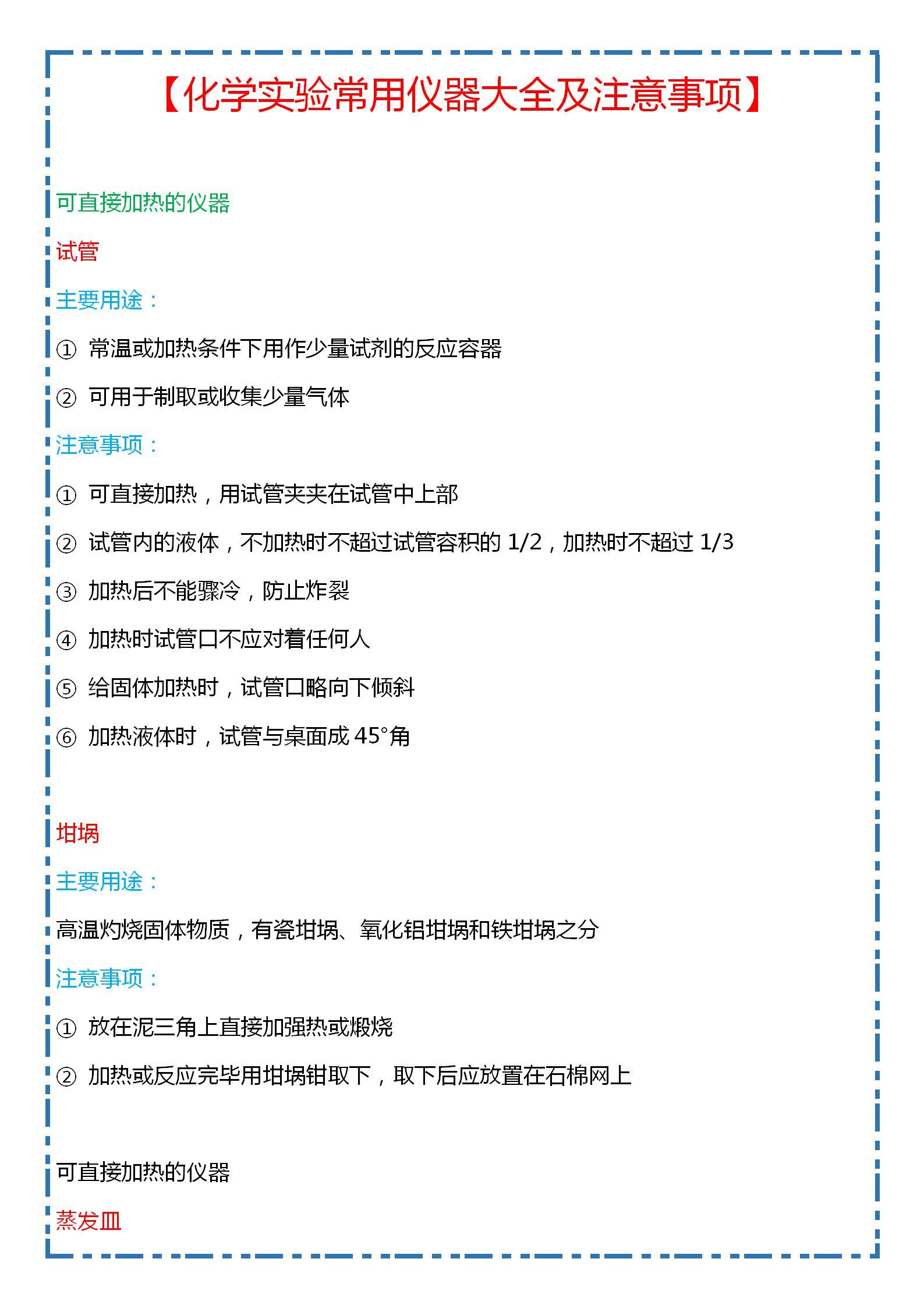 高中化学,实验常用仪器主要用途及注意事项,难得的大汇总