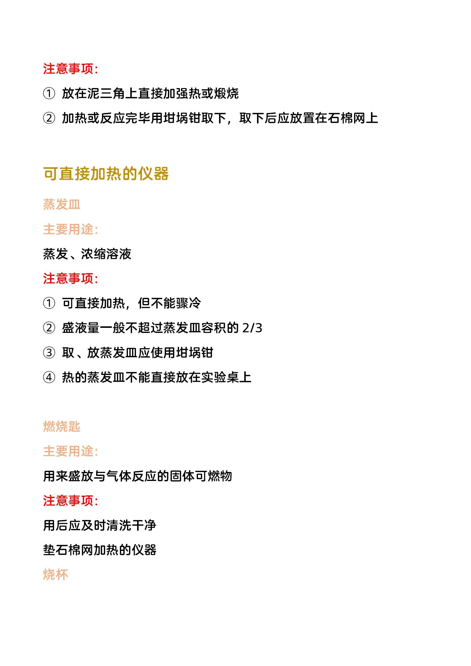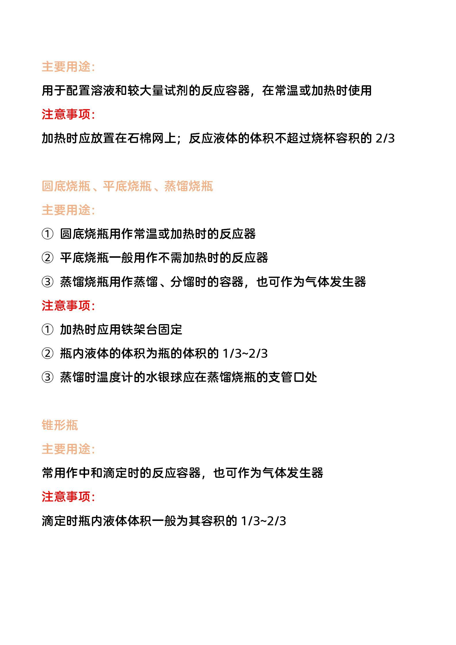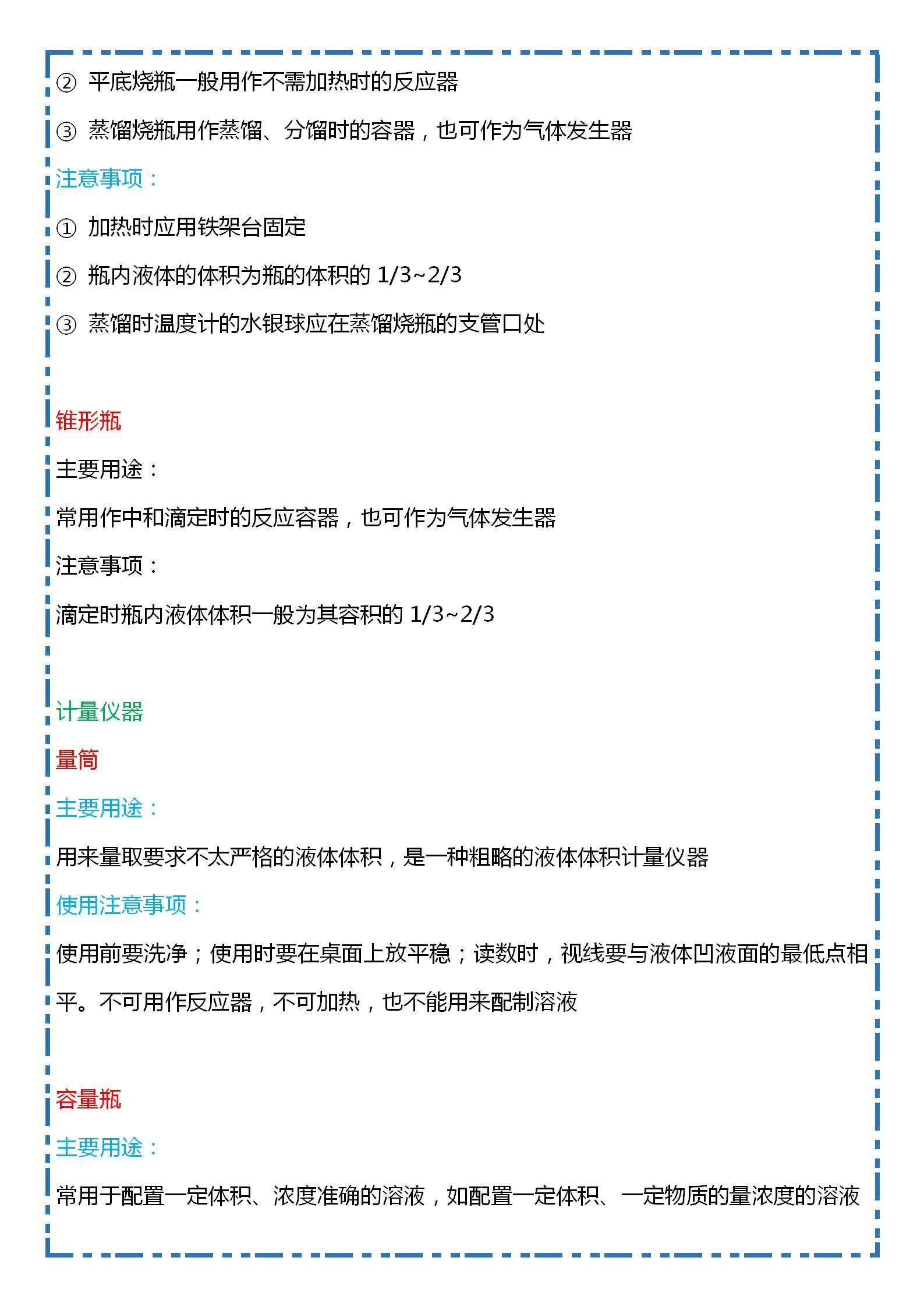 高中化学,实验常用仪器主要用途及注意事项,难得的大汇总