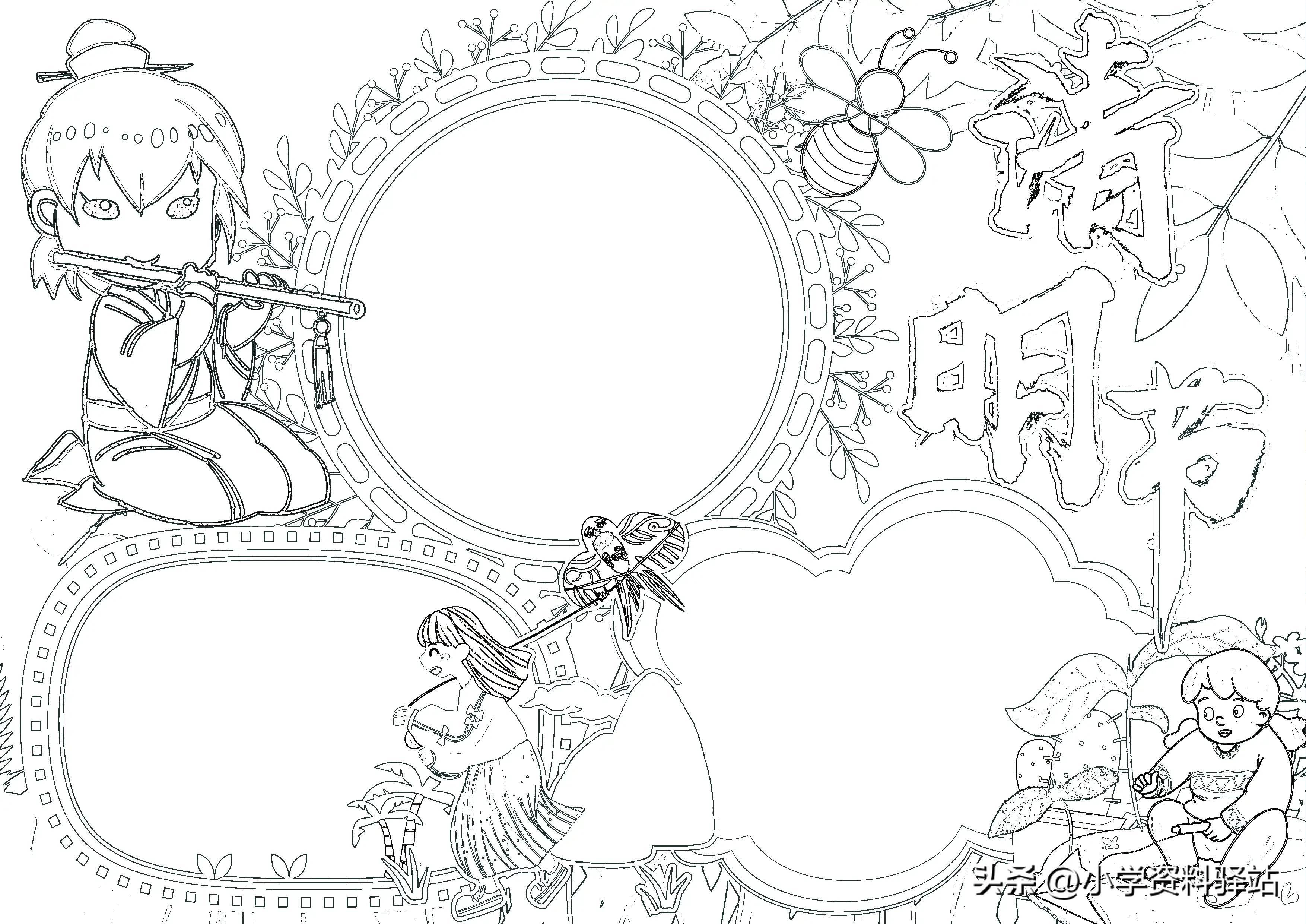 读书小报电子手抄报黑白线稿,学校学校应用模板,成套设计不操心