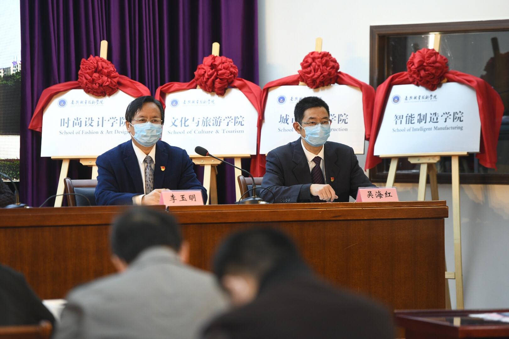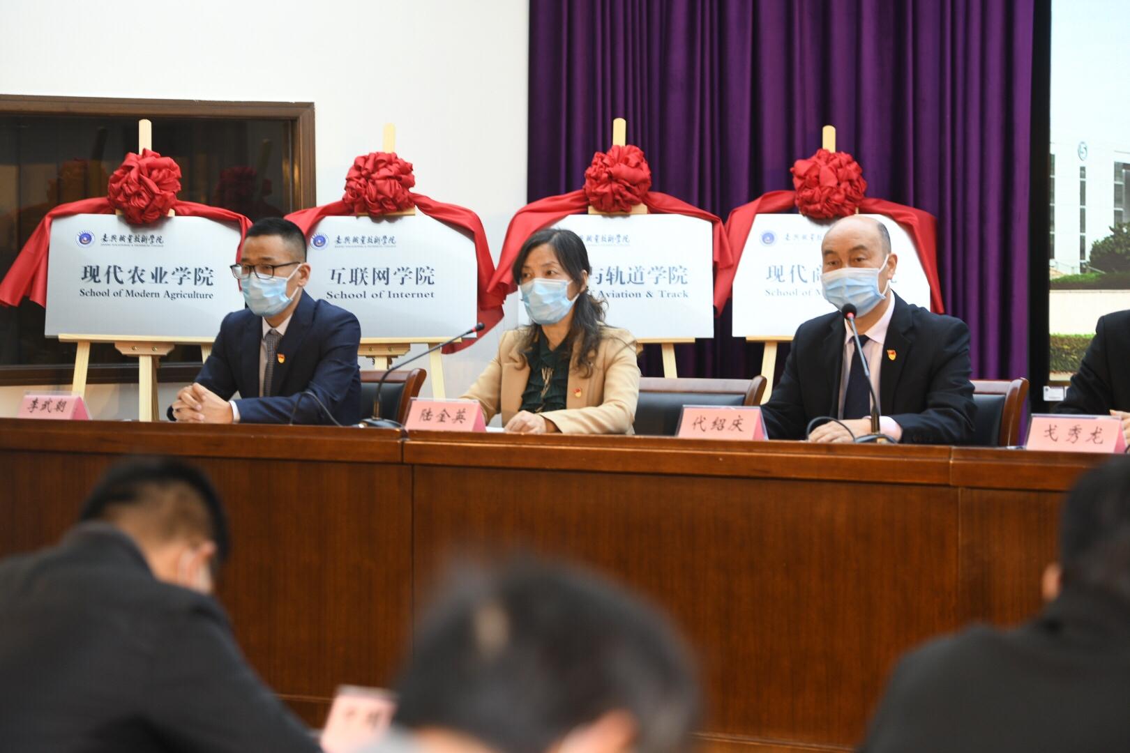 据介绍,学院“以产业链建专业群,以专业群建二级学院”的思路,优化调整现有教学资源,将新建航空与轨道学院,原有的农业与环境学院改建为现代农业学院,建筑学院改建为城市建设学院,机电与汽车学院改建为智能制造学院,信息技术学院改建为互联网学院,工商与旅游学院改建为文化与旅游学院,外语与贸易学院改建为现代商贸学院,服装与艺术设计学院改建为时尚设计学院。