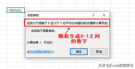 rand函数是返回大于或等于0且小于1的平均分布随机数,它会依据重新计算而变。