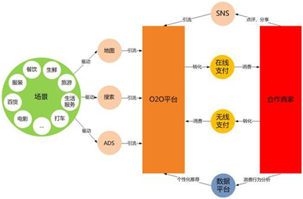 随着移动互联网的普及,互联网企业正面对一个巨大的商业机会,将其线上的巨大客流资源同线下商户相结合,将线上客流向线下导入,实现流量变现,从而创造出新的商业模式。O2O是电子商务的延伸,将电子商务的覆盖领域从标准化商品扩张到服务领域,如餐饮、打车等领域。