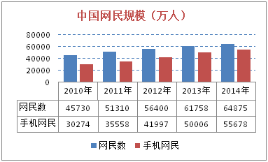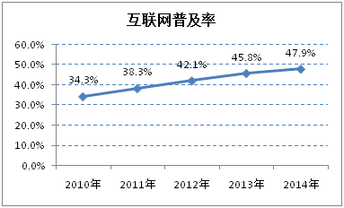 截至2014年12月,我国网民规模达6.49亿,全年共计新增网民3117万人。互联网普及率为47.9%,较2013年底提升了2.1个百分点。