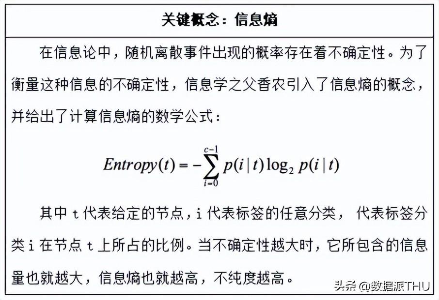 在构造决策树的时候,会基于纯度来构建。而经典的“不纯度”的指标有三种,分别是信息增益(ID3算法)、信息增益率(C4.5算法)以及基尼指数(Cart算法)。这里我们只介绍常用的信息增益算法。