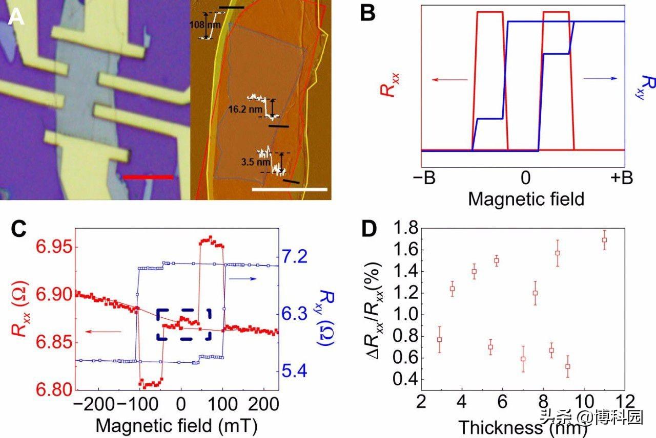 (此处已添加圈子卡片,请到今日头条客户端查看)当用非磁性vdW材料(如石墨烯和/或拓扑绝缘体)分层时,可以组装vdW异质结构,以提供其他无法实现的器件结构和功能。科学家们研究了二维Fe3GeTe2 (FGT),在之前的一项研究中,发现这种金属在自旋电子器件中具有很好的铁磁性,在材料中发现了一种前所未见的巨磁电阻(GMR)模式。