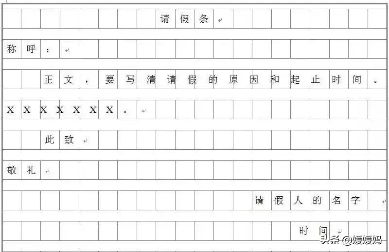 另外:留言条、托事条格式与请假条相同。