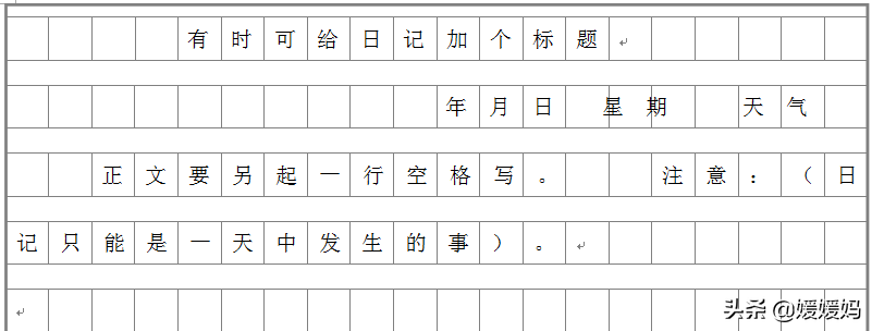 一般在第一行居右写清某年某月某日,星期几,也可以写上当天的天气情况;然后第二行开头空两格写正文,有时也可以给日记加个标题,点明主要内容。