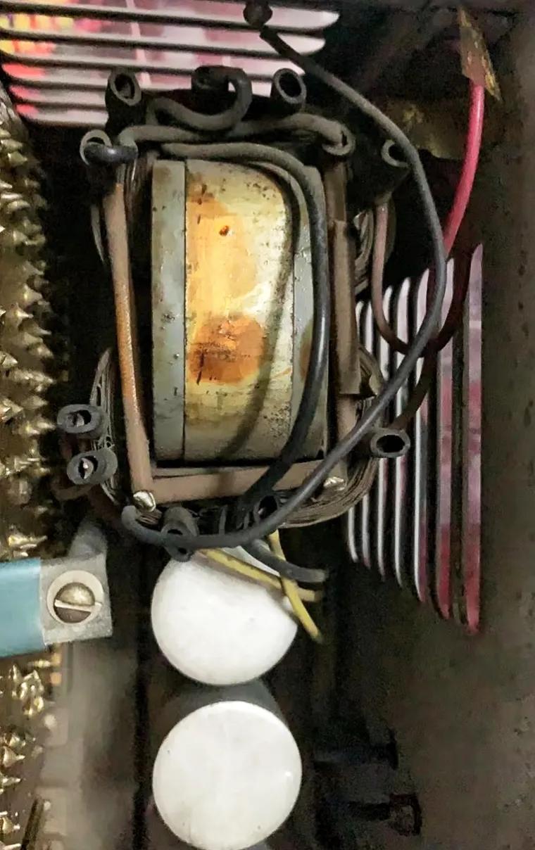 内部变压器和两个大铝壳滤波电容。